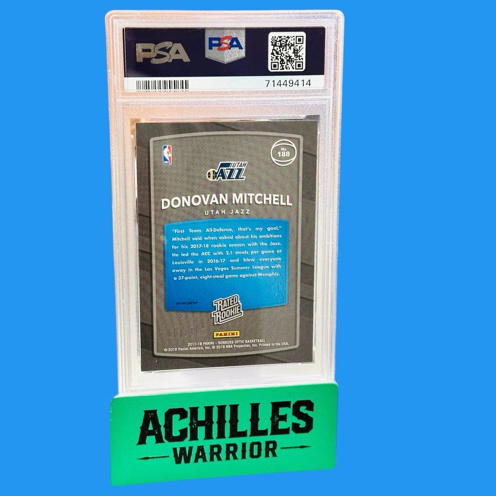 2017-18 Panini Donruss Optic Rated Rookie Orange #188 Donovan Mitchell PSA MT 9 Donovan Mitchell’s Rated Rookie Card PSA 9 : 71449414 Card No. 188