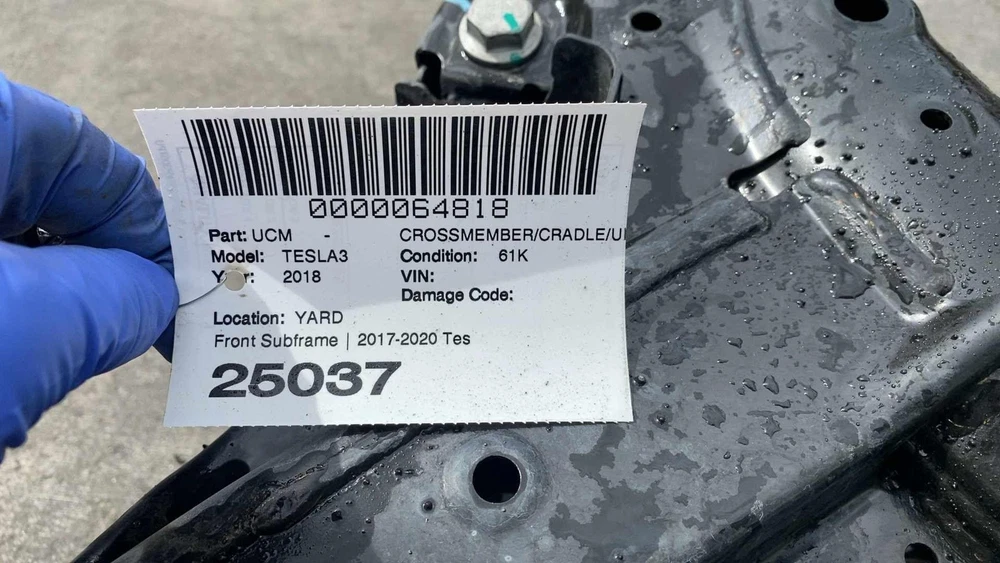 Donut Auto Dismantling Donut Auto Dismantling Rancho Cordova, CA Business Hours (PST/PDT) Mon - Fri 8am - 5pm Closed Sat & Sun Crossmember/cradle/undercarria Year: 18 Model: TESLA MODEL 3 Side: Type: Used Category: ND Condition: 61k Vehicle Stock #: 25037 Part Stock #: 0000064818 Additional notes: Front Subframe | 2017-2020 Tesla Model 3 Front Suspension Subframe Structure Cradle Crossmember Interchange: Also fits: Search for more parts from this donor vehicle Search for more parts for TESLA MODEL 3 Dear Valued Customers Before ordering, please verify the part number and compare the physical details of your part with the photos in our listing. Tesla sometimes changes parts within the same model year, so even if the year matches, variations may exist. Examine all photos and read the description. Please contact us and ask any questions you have about the item. What you see in the pictures is what you will receive. Item are sold as Pictured in our ads, All the damages are marked in pictures with colored markings ........ indicated scratches, O indicate dents/dings view all photos and description. All Parts come with a 60-Day warranty Compatibility We are not responsible for compatibility, please order parts with the same part number to avoid delays and fitment issues in your purchase. Always verify O.E.M part numbers check fitment. Shipping & Return Policy For LTL and freight shipments: Please inspect an item before signing. For LTL and freight shipments of large items like Battery Packs, Seats, Doors, Trunks, Hoods, and other sizable body parts, a commercial address is mandatory . This must be a business equipped with a dock or forklift. Please note that deliveries cannot be made to restaurants, office buildings, or hotels. Please allow 5-11 business days from the shipping date to receive freight items. If a forklift is not available to unload your package, please ensure that you added liftgate service fee to your order. Residential deliveries have an extra charge required by LTL to cover liftgate usage and city ordinance. Be advised not all LTL freight companies offer lift gate services in every town especially in rural areas. If you do not have a commercial address or a proper residential address reach out to us to work things out LTL items can always be held at your local hub and made available for pickup. We offer free local pickup Monday through Friday, from 8:00 AM to 5:00 PM. What separates us from our competitors As Pioneers in the Tesla used parts market Donut Auto Parts is leading in the industry. We have been specializing in Tesla's for over 5 years. Our Staff are highly trained and experienced Tesla specialists. We strive to help you solve all your part needs. Local Customers For our local customers we provide installation on battery packs and drive units purchase. Drive unit and battery pack installations come with a 60 day warranty . All parts are fully tested. Using the industries leading tools, we also provide installation of other parts. Please reach out to us directly for more information. Be Advised Programming may be required for most electronic components. Donut Auto Parts is not responsible for any labor costs and other charges such as programming. NO RESTOCKING FEE Payment Payment must be submitted within 48 hours after purchase time. We have a Same handling time when paid by 2pm pst and 3-day handling time for LTL freight items. Feedback and Rating We always Strive to earn positive feedback. If you encounter an issue with one of our items, please contact us before leaving any feedback or opening a case give us the opportunity to solve your order issue. We strive to provide excellent customer service to ensure that everyone is satisfied, and to gain happy and returning customers! ALLOW US TO RESOLVE ISSUES BEFORE LEAVING YOUR FEEDBACK PLEASE CONTACT US FIRST Airbag Notification If the item above is an airbag, I certify this airbag is not subject to recall and will be shipped in accordance with hazmat shipping requirements . Powered by Checkmate