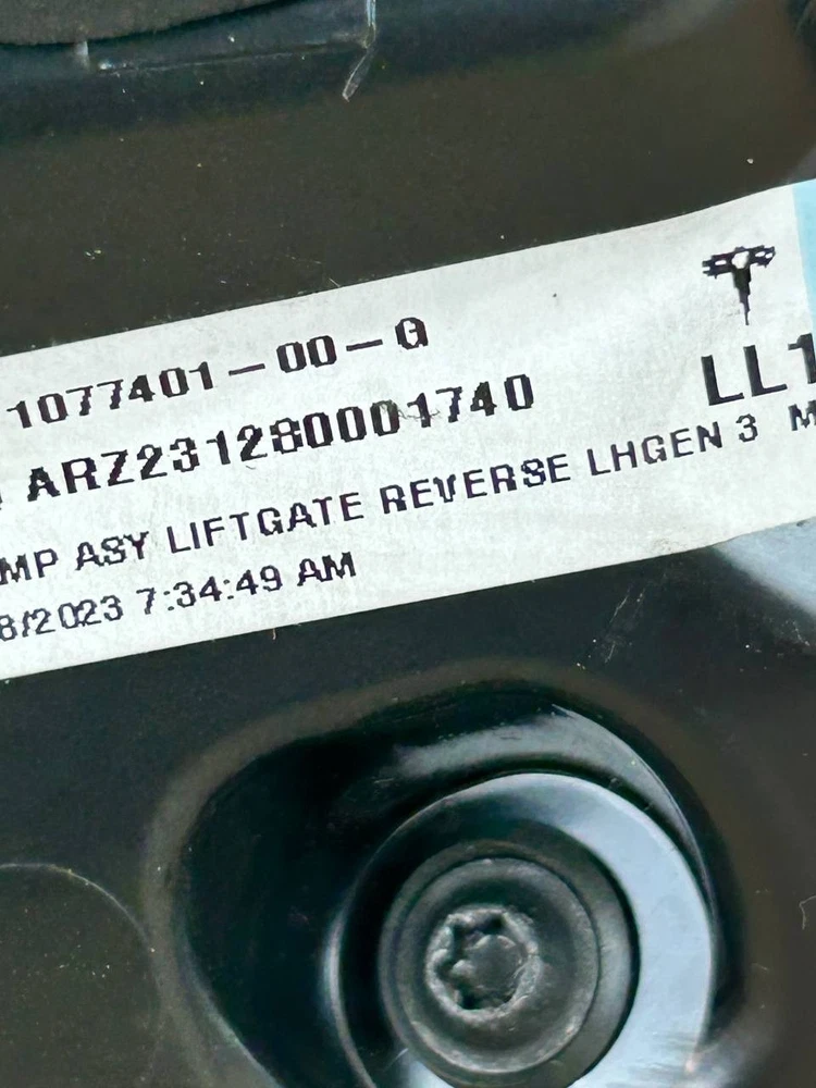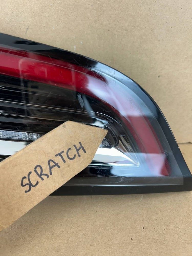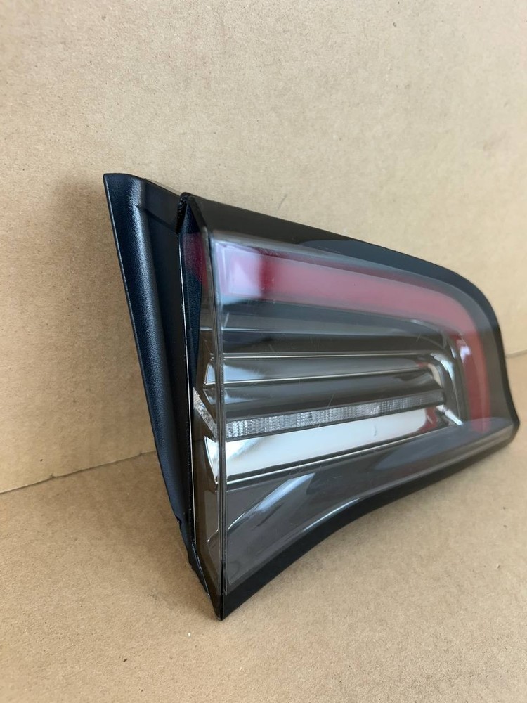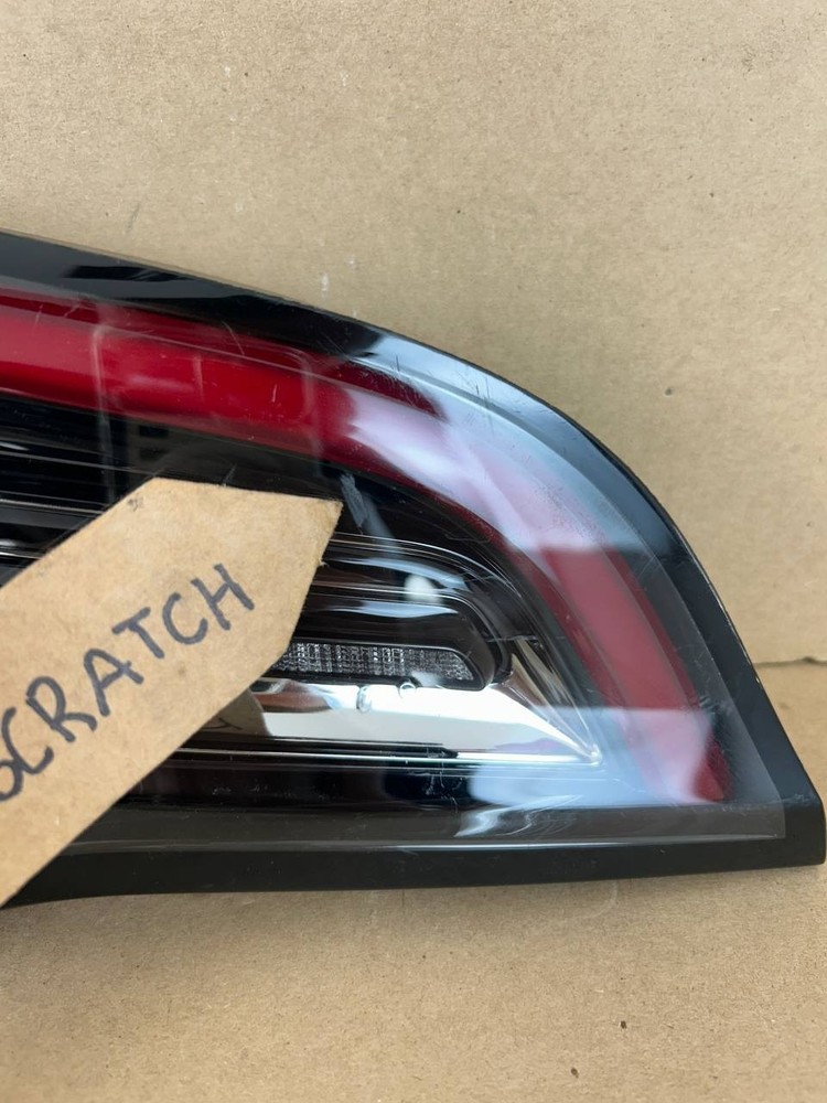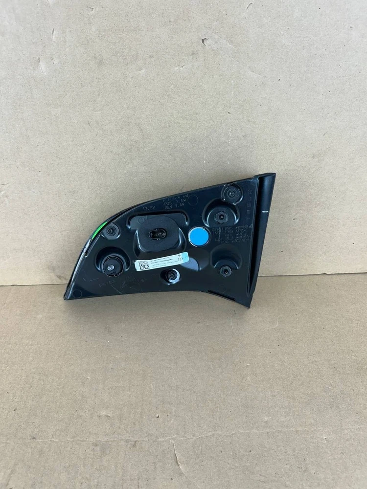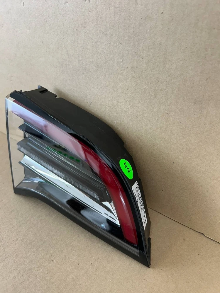 The product is an OEM left inner LED tail light for a 2017-2020 Tesla Model 3. It features a red light color with a clear lens, and uses LED lighting technology. The tail light assembly is branded by Tesla and has a manufacturer part number of 1077401-00-G. Perfect for replacing a damaged or malfunctioning tail light on the left side of the vehicle, this genuine OEM part ensures a perfect fit and quality performance for your Tesla Model 3.