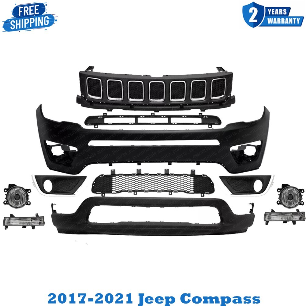 eBay New Front Bumper Cover Primed + Bumper Grille + Centre Grille + Lower Grille + Lower Valance + Front Signsl Light Pair & Fog Light with Bezel Pair For 2017-2021 Jeep Compass Manufacturer Part Number: LSGRJP016A Manufacturer Warranty: 2 Years Finish: Primed Specification: > Some Parts Will Be Delivered in Multiple Shipments. Include Parts: 1x Front Bumper Cover Primed 1x Front Bumper Grille 1x Front Centre Grille 1x Front Lower Grille 1x Front Bumper Lower Valance 1x Front Signsl Light Left Drier Side 1x Front Signsl Light Right Passenger Side 1x Fog Light with Bezel Left Driver Side 1x Fog Light with bezel Right Passenger Side Compatible: - Jeep: 2017-2021 Jeep Compass