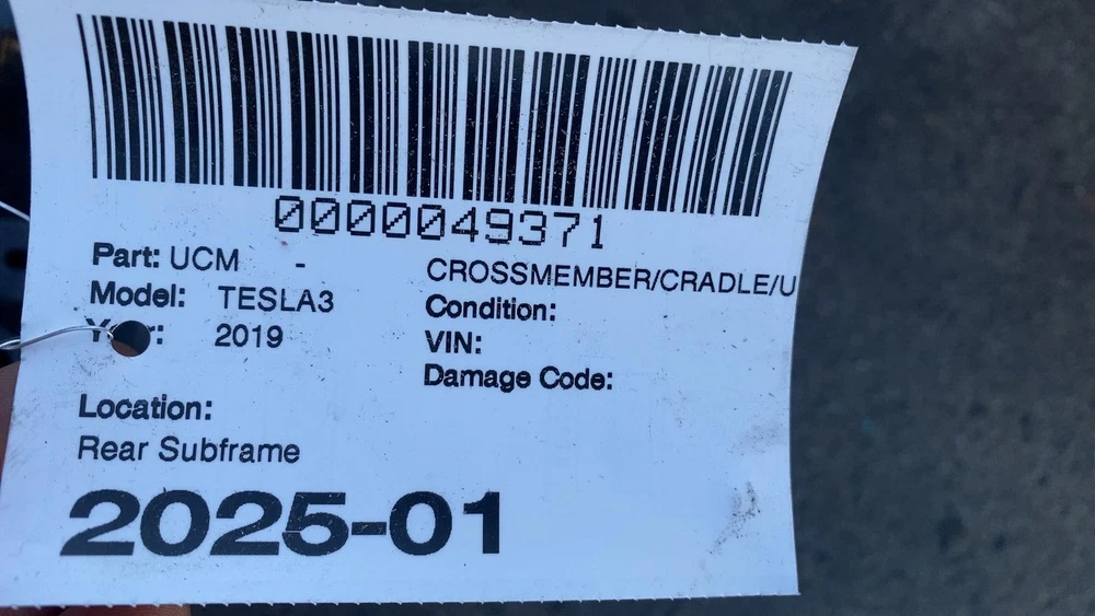 Donut Auto Dismantling Donut Auto Dismantling Rancho Cordova, CA Business Hours (PST/PDT) Mon - Fri 8am - 5pm Closed Sat & Sun Crossmember/cradle/undercarria Year: 19 Model: TESLA MODEL 3 Side: Type: Used Category: W Condition: Vehicle Stock #: 2025-01 Part Stock #: 0000049371 Additional notes: Rear Subframe Interchange: Also fits: Search for more parts from this donor vehicle Search for more parts for TESLA MODEL 3 Dear Valued Customers Before ordering, please verify the part number and compare the physical details of your part with the photos in our listing. Tesla sometimes changes parts within the same model year, so even if the year matches, variations may exist. Examine all photos and read the description. Please contact us and ask any questions you have about the item. What you see in the pictures is what you will receive. Item are sold as Pictured in our ads, All the damages are marked in pictures with colored markings ........ indicated scratches, O indicate dents/dings view all photos and description. All Parts come with a 30-Day warranty Compatibility We are not responsible for compatibility, please order parts with the same part number to avoid delays and fitment issues in your purchase. Always verify O.E.M part numbers check fitment. Shipping & Return Policy For LTL and freight shipments of large items like Battery Packs, Seats, Doors, Trunks, Hoods, and other sizable body parts, a commercial address is mandatory . This must be a business equipped with a dock or forklift. Please note that deliveries cannot be made to restaurants, office buildings, or hotels. Please allow 5-11 business days from the shipping date to receive freight items. If a forklift is not available to unload your package, please ensure that you added liftgate service fee to your order. Residential deliveries have an extra charge required by LTL to cover liftgate usage and city ordinance. Be advised not all LTL freight companies offer lift gate services in every town especially in rural areas. If you do not have a commercial address or a proper residential address reach out to us to work things out LTL items can always be held at your local hub and made available for pickup. We offer free local pickup Monday through Friday, from 8:00 AM to 5:00 PM. What separates us from our competitors As Pioneers in the Tesla used parts market Donut Auto Parts is leading in the industry. We have been specializing in Tesla's for over 5 years. Our Staff are highly trained and experienced Tesla specialists. We strive to help you solve all your part needs. Local Customers For our local customers we provide installation on battery packs and drive units purchase. Drive unit and battery pack installations come with a 60 day warranty . All parts are fully tested. Using the industries leading tools, we also provide installation of other parts. Please reach out to us directly for more information. Be Advised Programming may be required for most electronic components. Donut Auto Parts is not responsible for any labor costs and other charges such as programming. NO RESTOCKING FEE Payment Payment must be submitted within 48 hours after purchase time. We have a Same handling time when paid by 2pm pst and 3-day handling time for LTL freight items. Feedback and Rating We always Strive to earn positive feedback. If you encounter an issue with one of our items, please contact us before leaving any feedback or opening a case give us the opportunity to solve your order issue. We strive to provide excellent customer service to ensure that everyone is satisfied, and to gain happy and returning customers! ALLOW US TO RESOLVE ISSUES BEFORE LEAVING YOUR FEEDBACK PLEASE CONTACT US FIRST Airbag Notification If the item above is an airbag, I certify this airbag is not subject to recall and will be shipped in accordance with hazmat shipping requirements . Powered by Checkmate