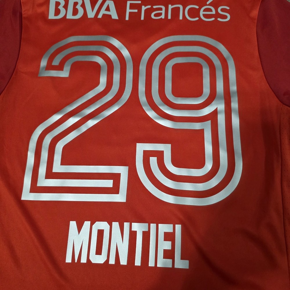 Player: Gonzalo Montiel Officially Licensed: Yes Sport: Soccer Capacity: Less than 8 oz Color: Red Sleeve Length: Long Sleeve Product: Jersey Size: S Team: River Plate Brand: adidas Seller Notes: “9 out of 10, please refer to the pictures. Measurements in full description. Please read.” Event/Tournament: Liga Profesional del Futbol Argentino Country of Origin: Argentina Gender: Men