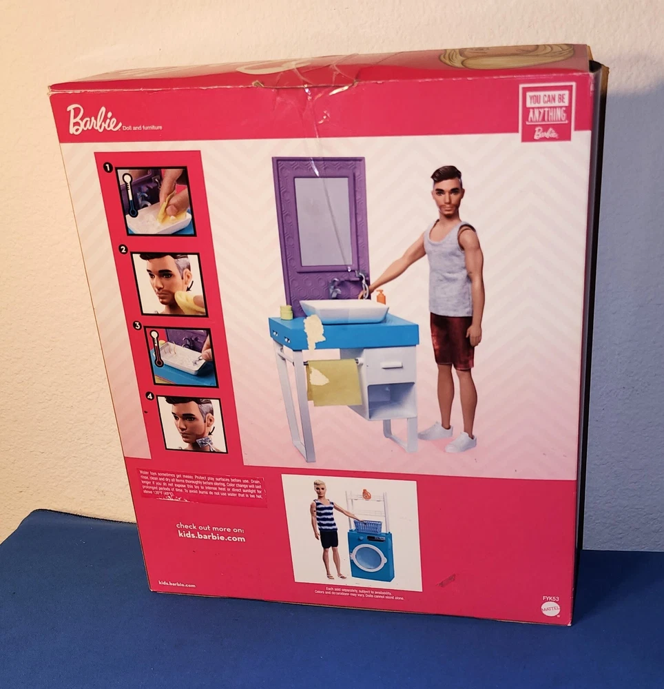 2018 Mattel Barbie Ken Shaving Bathroom Set #FYK53 New, box shows alittle wear. Size of Ken - 12" Tall