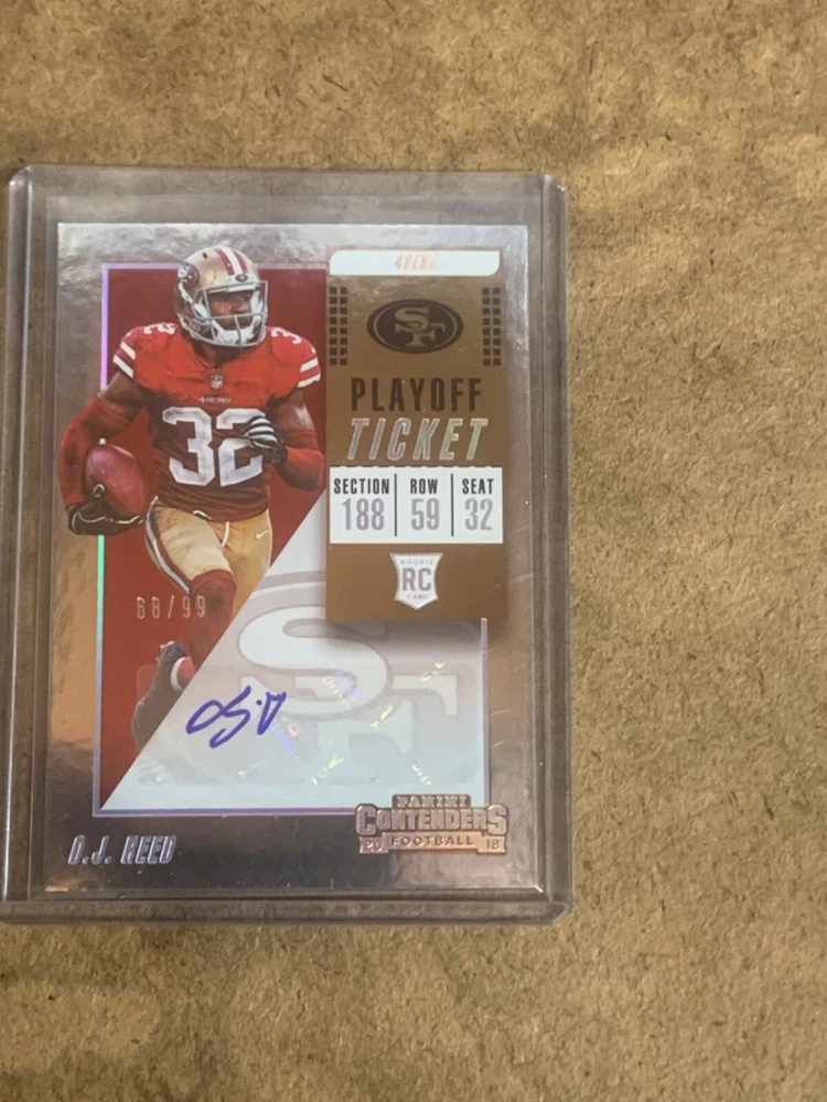 Team: San Francisco 49ers Print Run: 99 Sport: Football Additional Description: Rookie Ticket Autograph - D.J. Reed Features: Serial Numbered, Parallel/Variety, Base Set, Rookie Series: Panini Contenders Parallel/Variety: Playoff Ticket Set: 2018 Panini Contenders Autographed: Yes Card Number: 213 brand: Panini Season: 2018 League: National Football League (NFL) Subset: Rookie Ticket Autograph Manufacturer: Panini Player/Athlete: D.J. Reed