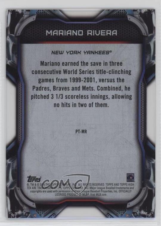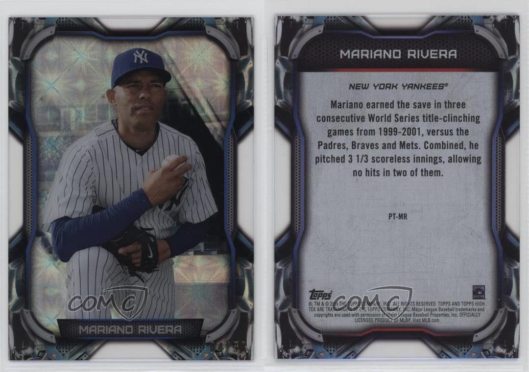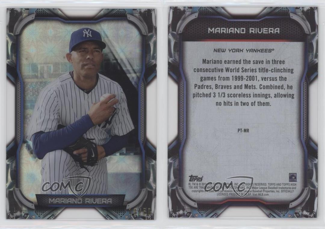 2018 Topps High Tek - PortraiTEK #PT-MR Mariano Rivera Qty Made: 50 - Baseball Card - Featuring the New York Yankees - Featuring Mariano Rivera Search for more: 2018 Topps High Tek Search for more: 2018 Topps High Tek - PortraiTEK View all of our Listings Auctions Buy It Now About Us Located in the beautiful Pacific Northwest, COMC (Check Out My Cards) is the world's largest consignment service for trading card singles. More than 10,000 people have used our consignment service to list over 50 million trading cards. Find out how we can help you consign your items on eBay by contacting us through eBay messaging. COMC -- "The Safe & Easy Way to Buy & Sell" Representative Image - Select Specific Item above to see image of actual item Representative Image - Select Specific Item above to see image of actual item Raw Condition for Modern Cards Unless otherwise noted, raw modern cards are listed in Near Mint-Mint condition or better. A NM-MT card appears to be Mint at first glance, but upon closer inspection, may exhibit some of the following: minor print defects (e.g. roller marks, print line, dimple), minor scratches, slight edge wear, and slight corner wear. Centering is clearly visible in the images provided and does not factor into our condition assessment. Raw Condition for Vintage Cards Unless otherwise noted, raw vintage cards are listed in Excellent condition or better. An EX card may exhibit some of the following: minor rounding of corners, surface wear, print defects, light scratches, and slight edge wear/chipping. Centering is clearly visible in the images provided and does not factor into our condition assessment. Domestic Shipping Combined shipping for multiple items is available. To receive combined shipping, please ensure all desired items are in your eBay shopping cart before proceeding to checkout. eBay limits orders to 40 items per order. We automatically combine multiple orders placed on the same day. If you place multiple orders on the same day, please contact us to request a refund of applicable shipping costs. Signature confirmation may be required on invoices over $400. All cards are protected and shipped securely. International Shipping COMC offers eBay's International Shipping (EIS) for international orders under $2,500* (see country exceptions below). All duties and import fees are paid at checkout; in the rare event that there are additional import fees upon delivery, these are borne by the buyer. EIS packages route through a shipping hub in Erlanger, KY before shipping to their final destination. Please note that EIS does not allow for combined shipments. The shipping rates are determined by eBay and cannot be adjusted. *Maximum sale price exceptions: Colombia, Kuwait ($2,000); Taiwan ($1,539); Chile, Costa Rica, Guatemala, Honduras, Trinidad and Tobago ($1,000); Antigua and Barbuda, Aruba, Belize, Dominica, Grenada, Philippines, Saint Kitts and Nevis, Saint Lucia, Montserrat, Turks and Caicos Islands ($500); Dominican Republic, El Salvador ($200). Please request a shipping quote through eBay messaging for orders that exceed the maximum sale price supported by eBay's International Shipping. You will be responsible for all duties and import fees for international orders shipped outside the EIS. All cards are protected and shipped securely. Payment COMC does not accept offers on our cards through our eBay storefront. COMC utilizes eBay’s managed payments system. If you are experiencing difficulties making a payment, please contact eBay for assistance. Return Policy Returns are only accepted on the rare occasion the item is not as described. If you are making a return, please initiate the return process through eBay so a mailing label can be provided for you. Prior to listing, our expert team carefully assessed this item to represent it accurately. Please review the description and high-definition images prior to purchasing to ensure this item meets your satisfaction. We welcome you to contact us if you have further questions about this item. Trust and Integrity COMC carefully assesses each item consigned to us to prevent fraudulent items from entering the marketplace. If you believe an item offered on COMC may be fraudulent, please contact us with details so we can investigate the issue. Items we determine are outside our supported items policy may be removed. Last Modified: 3/3/2025 4:29:32 AM PDT