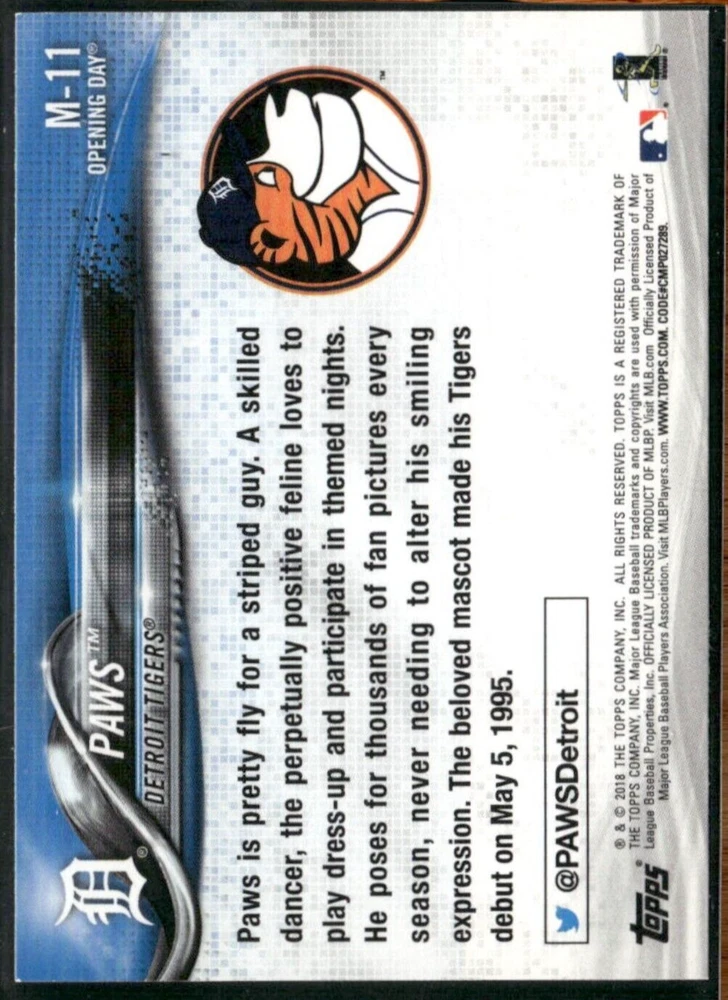 2018 Topps Paws #M-11 Mascot Detroit Tigers