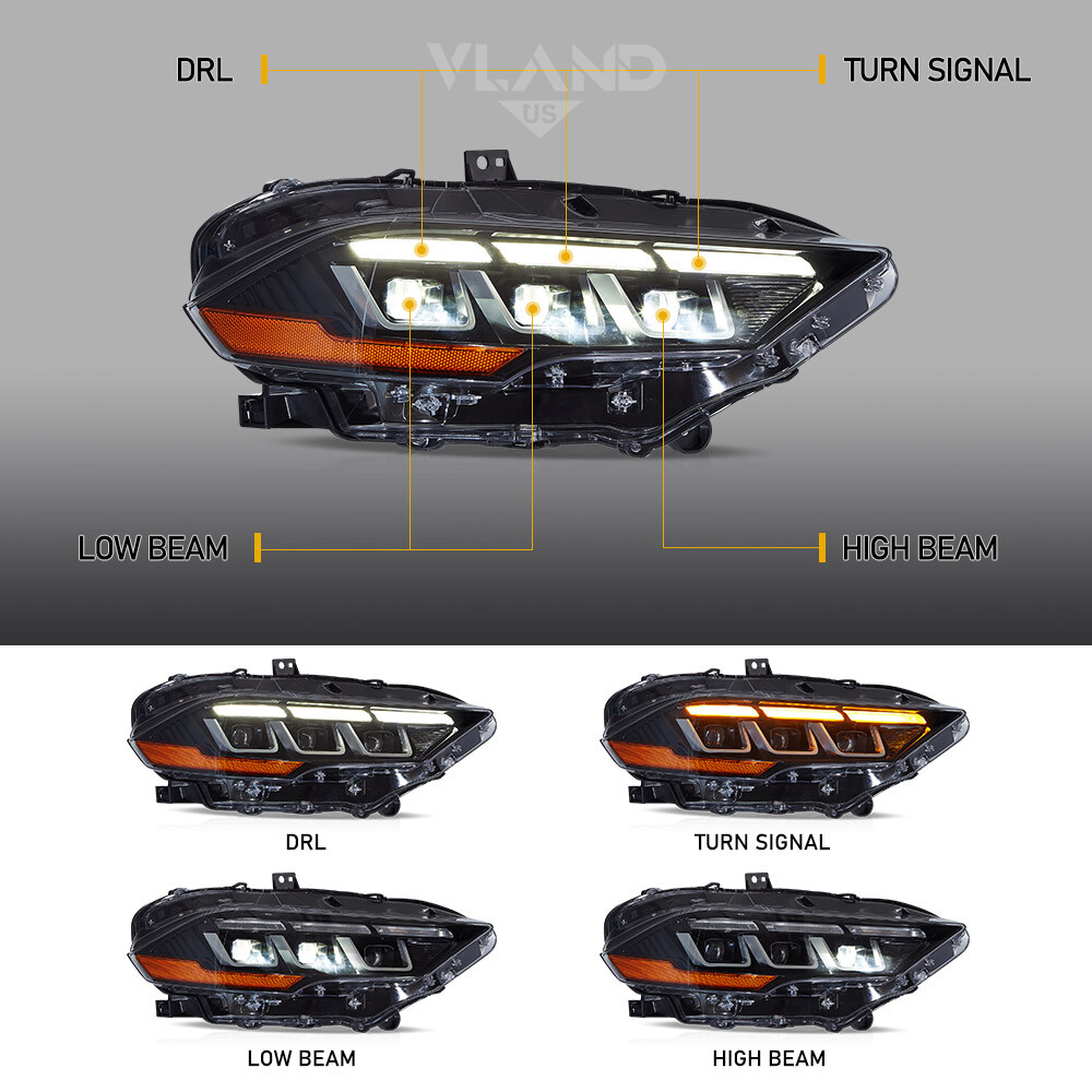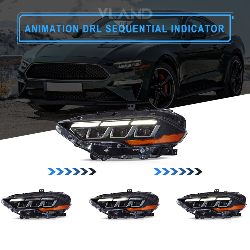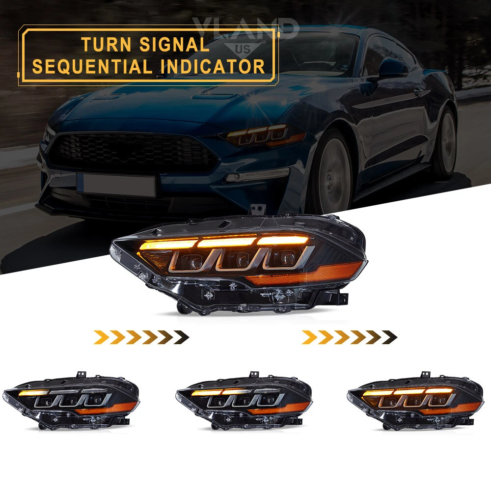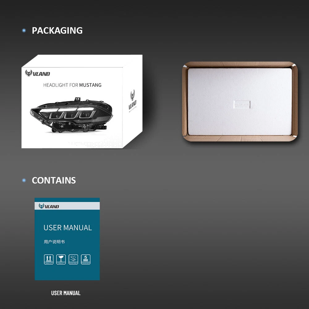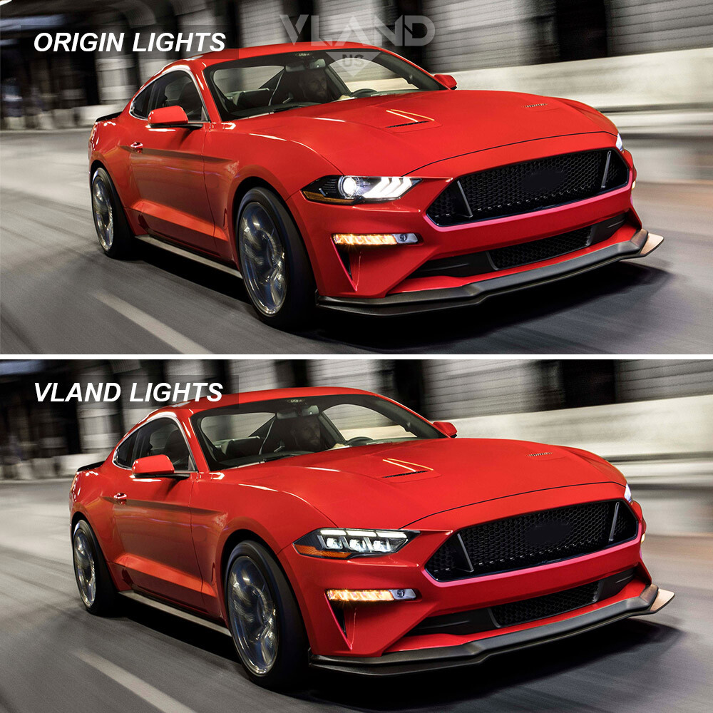 For 2018-2021 Ford Mustang GT FULL LED Projector Headlights + Clear Tail Lights Fitment: Fit For Ford Mustang 2018 2019 2020 2021 Certification: DOT/SAE Item Features(Headlights): Running Light: LED (Diamond White) High/Low Beam: FULL LED Projector (No need Bulbs) Turn Signal: LED (Amber.With Sequential Turn Signal) FULL LED Headlights,no need bulbs. Item Features(Taillights): Lens Color:Clear Running Light: LED (Red) Brake Light: LED (Red) Turn Signals: LED (5 modes) Description: The package includes: 1 pair of headlights and 1 pair of taillights . This item has the same connections and wires with the original headlights and taillights. It is easy to install still professional installation is recommended. Warranty: One Year You May Also Like: 👇 SPECIFIC SHIPPING ABOUT PAYMENT RETURN SPECIFIC SHIPPING ABOUT PAYMENT RETURN VLAND Headlights VLAND Tail Lights VLAND Combination Set VLAND Bulbs For Chevrolet For Dodge For Ford For Honda For Mitsubishi For Hyundai For Lexus For Toyota For BMW For GMC For Volkswagen For Tesla For Subaru Other On Oct 31, 2024 at 19:16:49 PDT, seller added the following information: