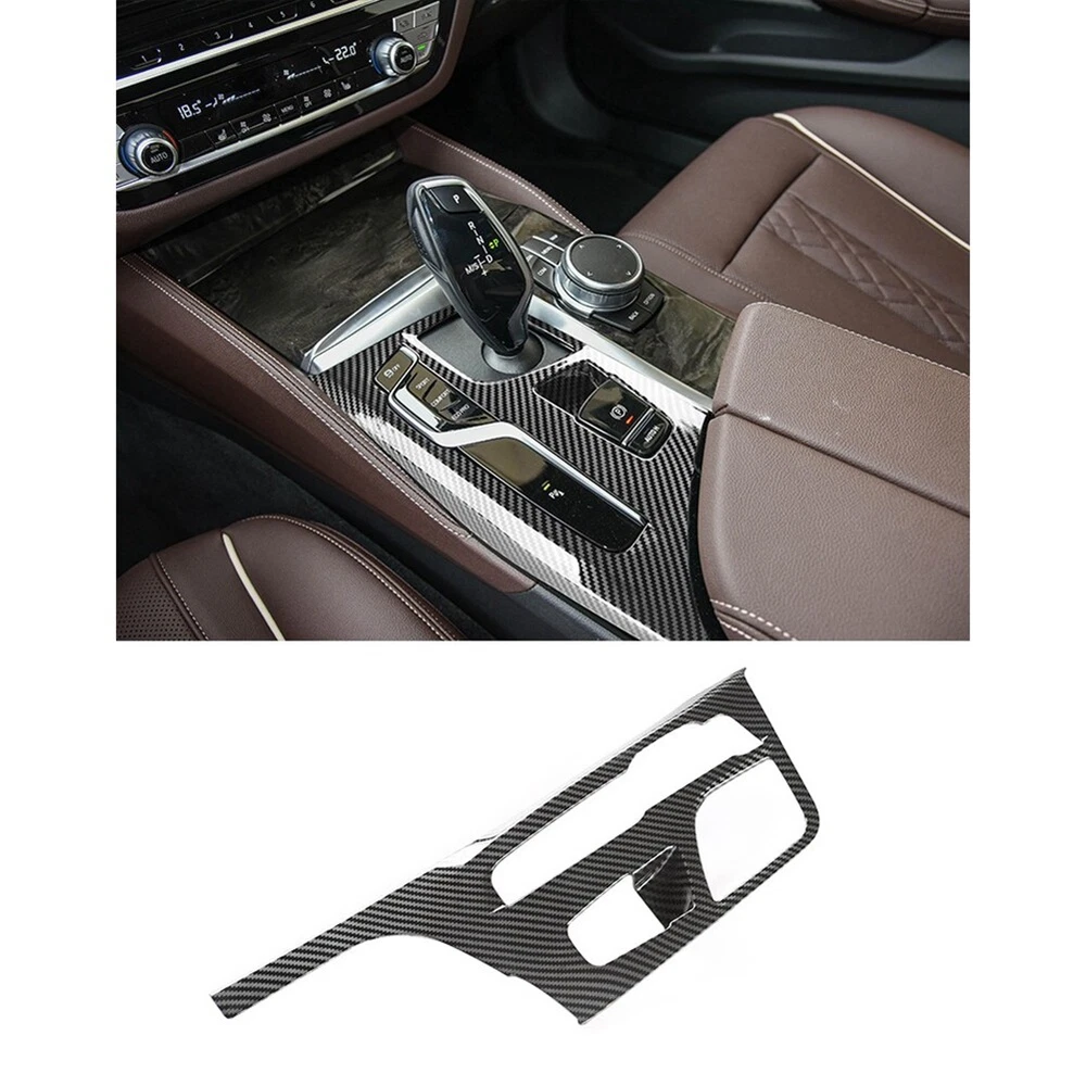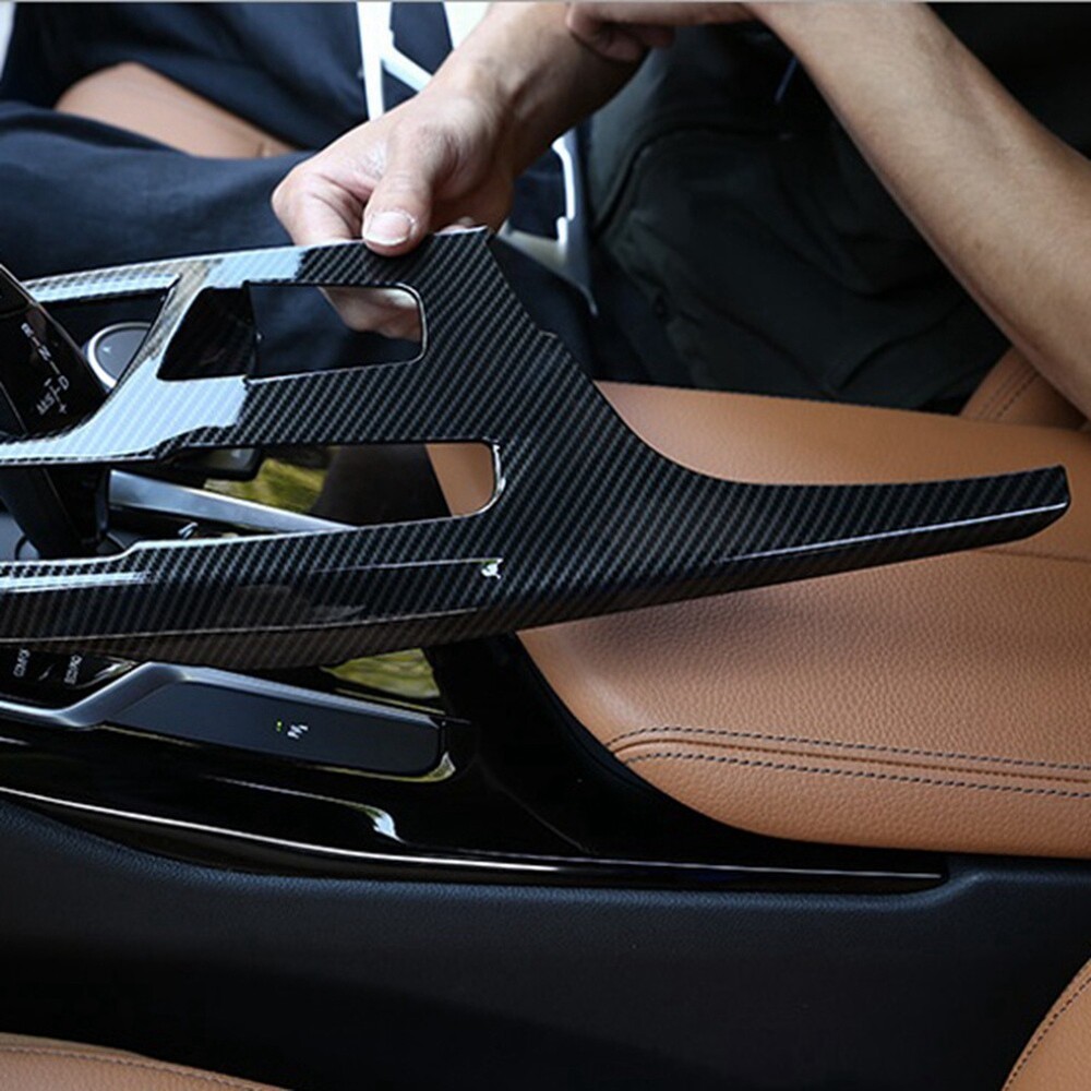 For - 5 Series G30 2018-2022 Carbon Fiber Car Center Console Gear Panel4719 High quality car interior decorative accessory For 5 Series G30 2018-2022 Prevent the of center console gear panel from scratches, dust, keeping it clear and new all the time. This item is made of high quality ABS plastic, , colorfast and . Fine processing creates gloss appearance, carbon fiber style for adding luxury and elegant sense to it. Self adhesive design, no harm to your car, easy to attach it to car and 't peel off. Condition: Name: Center Console Gear Shift Panel Cover Trim Colour:carbon fiber + black Material:ABS Package Contents: 1 x Gear shift panel cover