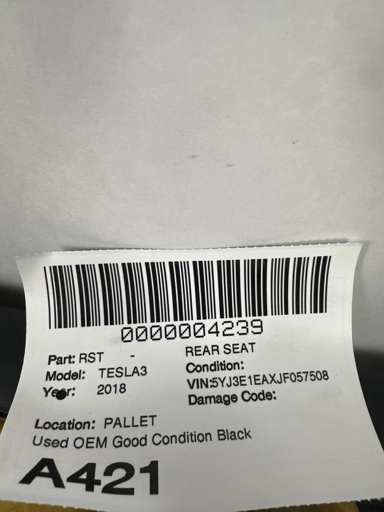 HK Auto Salvage HK Auto Salvage Montebello, CA Business Hours (PST/PDT) Mon - Fri 8am - 5pm Saturday 8am - 2pm Closed Sat & Sun Rear Seat Year: 18 Model: TESLA MODEL 3 Side: Type: Used Category: Condition: VIN: 5YJ3E1EAXJF057508 Vehicle Stock #: A421 Part Stock #: 0000004239 Vehicle Info: WHITE EXT,BLACK INT Additional notes: Used Oem Good Condition Black Leather Rear Lower Bench Cushion See Pictures To Verify Interchange: Also fits: Search for more parts from this donor vehicle Search for more parts for TESLA MODEL 3 Airbag Notification If the item above is an airbag, I certify this airbag is not subject to recall and will be shipped in accordance with hazmat shipping requirements . Payment We accept credit cards through eBay Managed Payments only Sales tax collected by eBay where applicable COD available for orders placed for delivery to local businesses; please contact us prior to purchase to arrange Pay on pickup available for orders placed for local pickup Shipping We ship by FedEx, UPS, and USPS. Most items ship within 24 hours of payment; items paid for on the weekend or holidays ship on the following business day. Any free shipping we offer is for the continental United States only. If you are from Hawaii, Alaska, or a Territory of the United States, please request a shipping total before bidding and we will do our best to keep the cost low. Local delivery and local pickup options are also available. Warranty & Returns 30-day standard warranty on all general parts 90-day standard warranty on engines and transmissions Please verify fitment independently prior to purchase, as the information in the "compatibility" section above is generated by eBay Motors and not from us. If you have questions or concerns about fitment, please contact us prior to purchase. Contact Us If you have any questions regarding an eBay item, please CONTACT US via eBay messaging before you make the purchase. Please verify fitment independently prior to purchase, as the information in the "compatibility" section above is generated by eBay Motors and not from us. If you have questions or concerns about fitment, please contact us prior to purchase. After you have received your product in satisfactory condition, please leave us positive feedback. If there is a problem with your purchase, do not leave neutral or negative feedback: CONTACT US so that we can help you to resolve your issue to your satisfaction. Powered by Checkmate