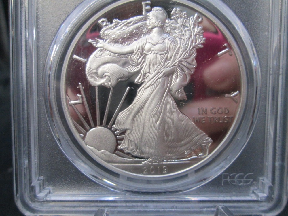 2019 S American Eagle Proof .999 Fine Silver 1oz Dollar PCGS PR70 DCAM Please look at all photo's for actual items and condition UNITED STATES SHIPPING We offer combined shipping on multiple orders. In this event, please wait to receive a combined invoice before completing payment. You may notify us via eBay message of your continued bidding to help us best assist you. We give up to 10 Days from first items ending date for combined orders, or an unpaid case will open. Once a payment is made no other orders can be combined with that order. We use the USPS shipping service through EBay so you can track your package right online. You will receive your tracking number via messages. We do offer LOCAL PICK UP INTERNATIONAL SHIPPING Please review the eBay Global Shipping Program before bidding. These orders will be subject to domestic shipping charges along with any taxes, tariffs or customs charges from the destination country. If you are not 100% satisfied with your item you may return within 30days of received date. We do our best to present accurate information about every item we sell. If you have any questions please feel free to ask through message. WE A PPRECIATE YOUR BUSINESS AND THANK YOU FOR VIEWING OUR LISTING!
