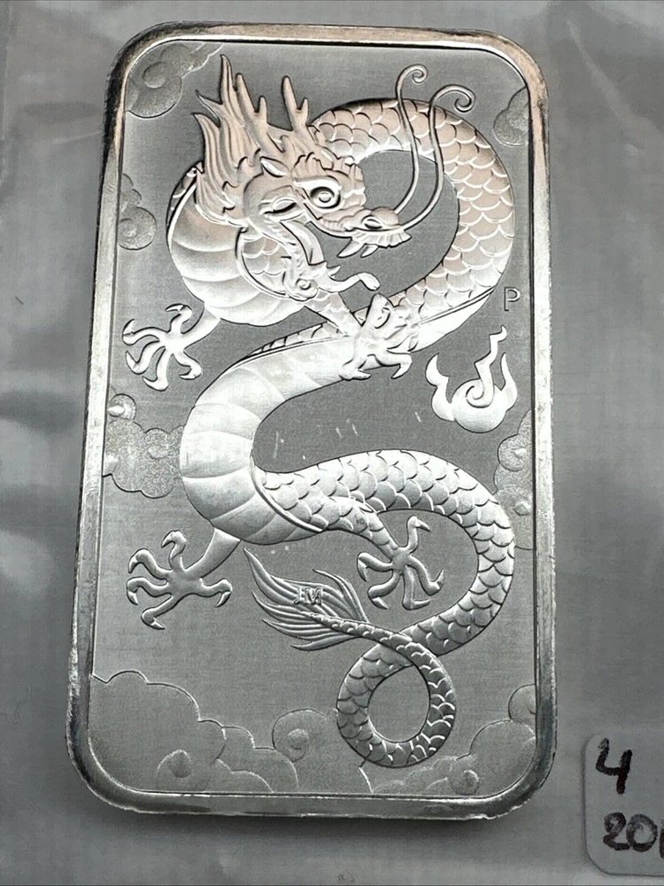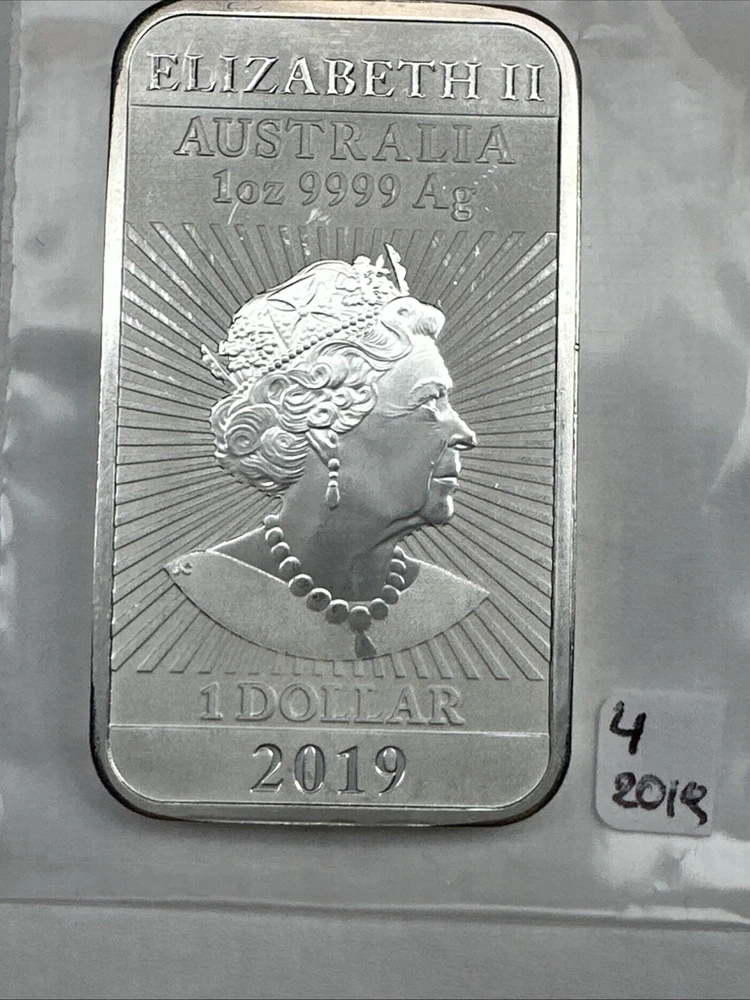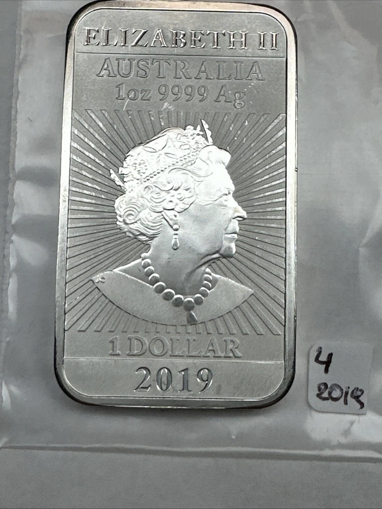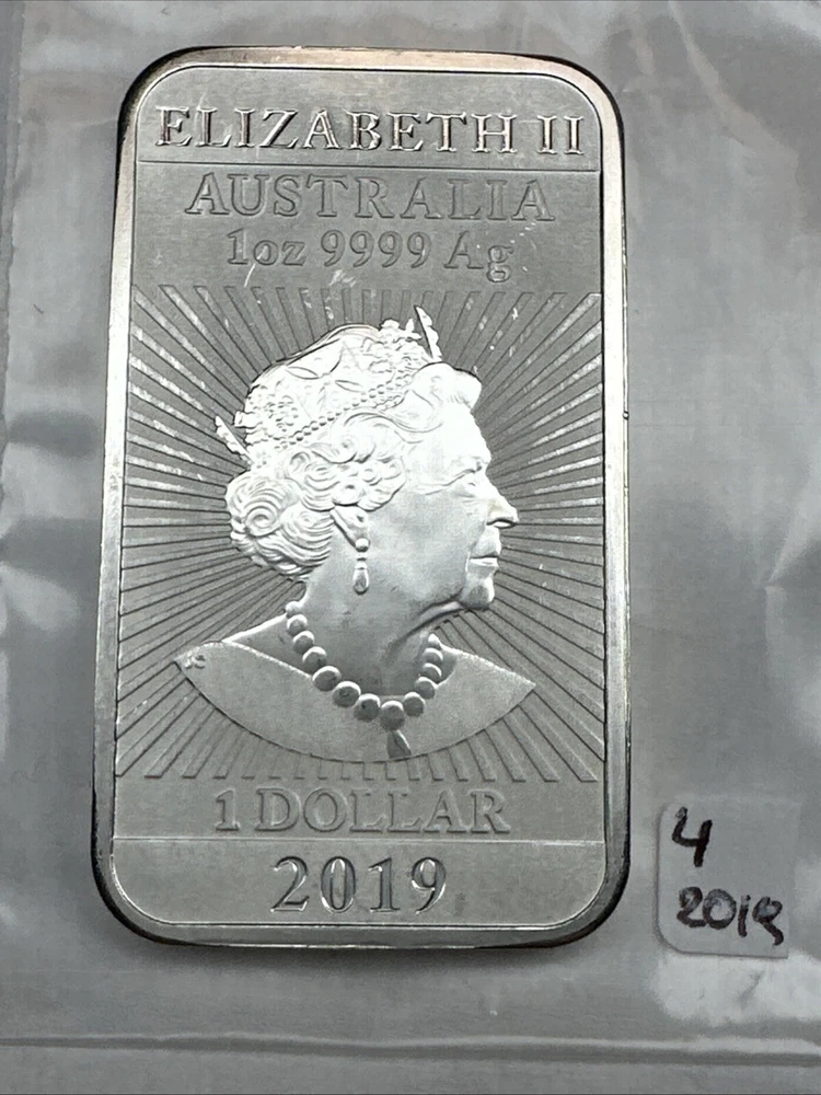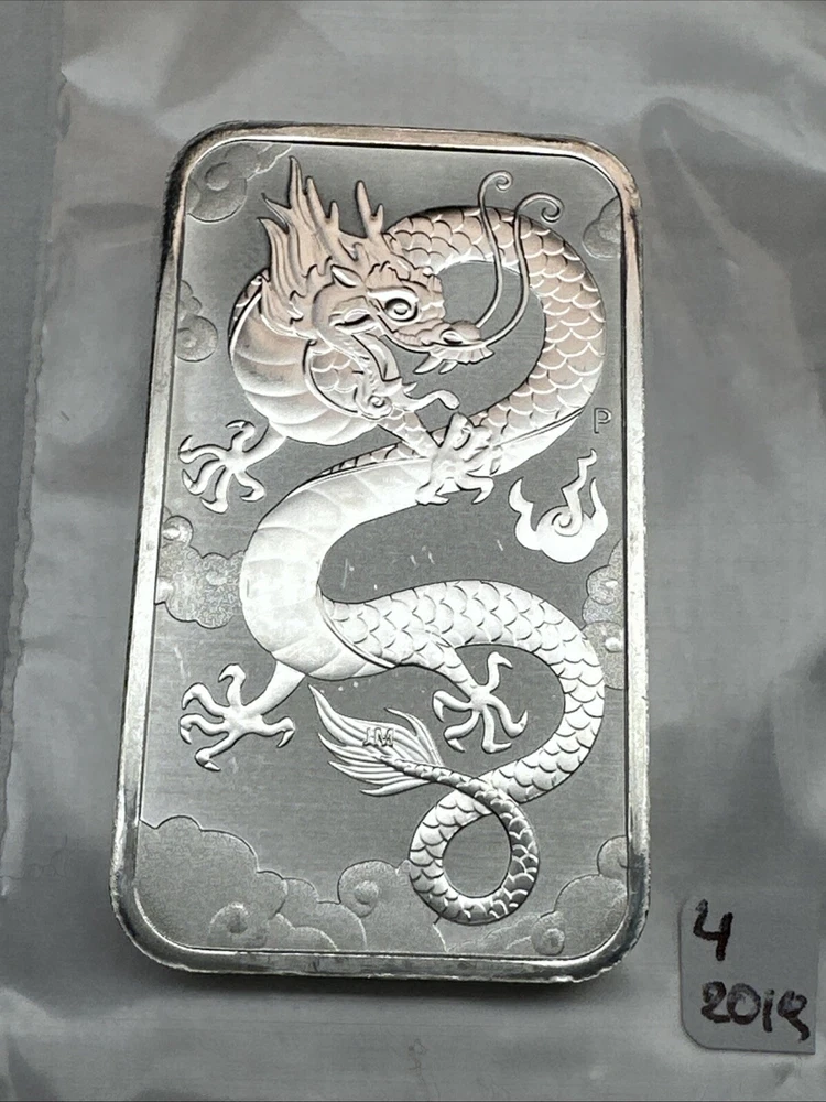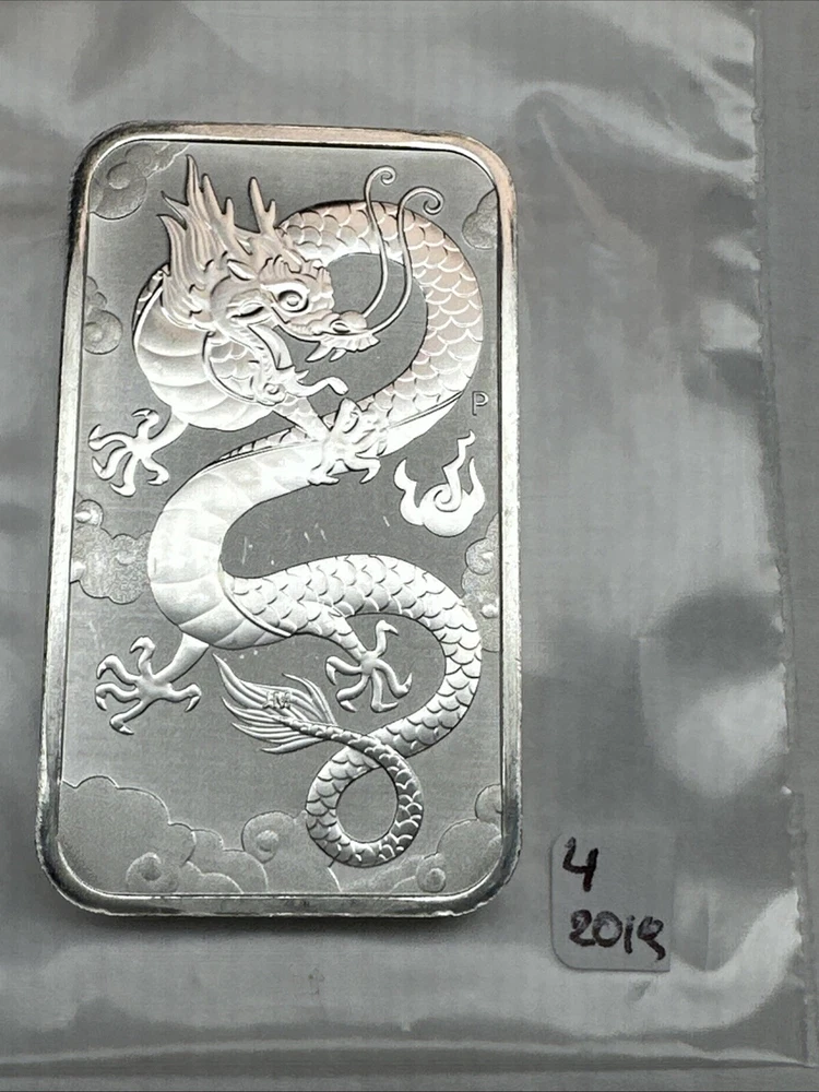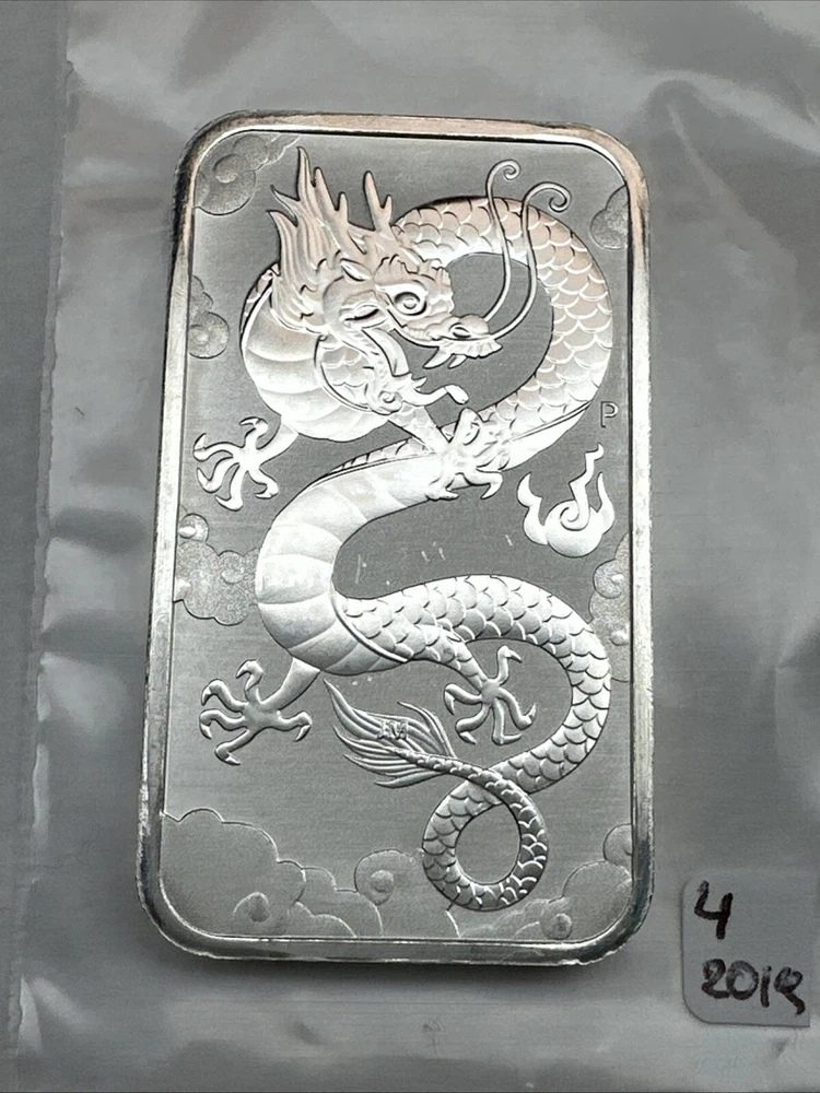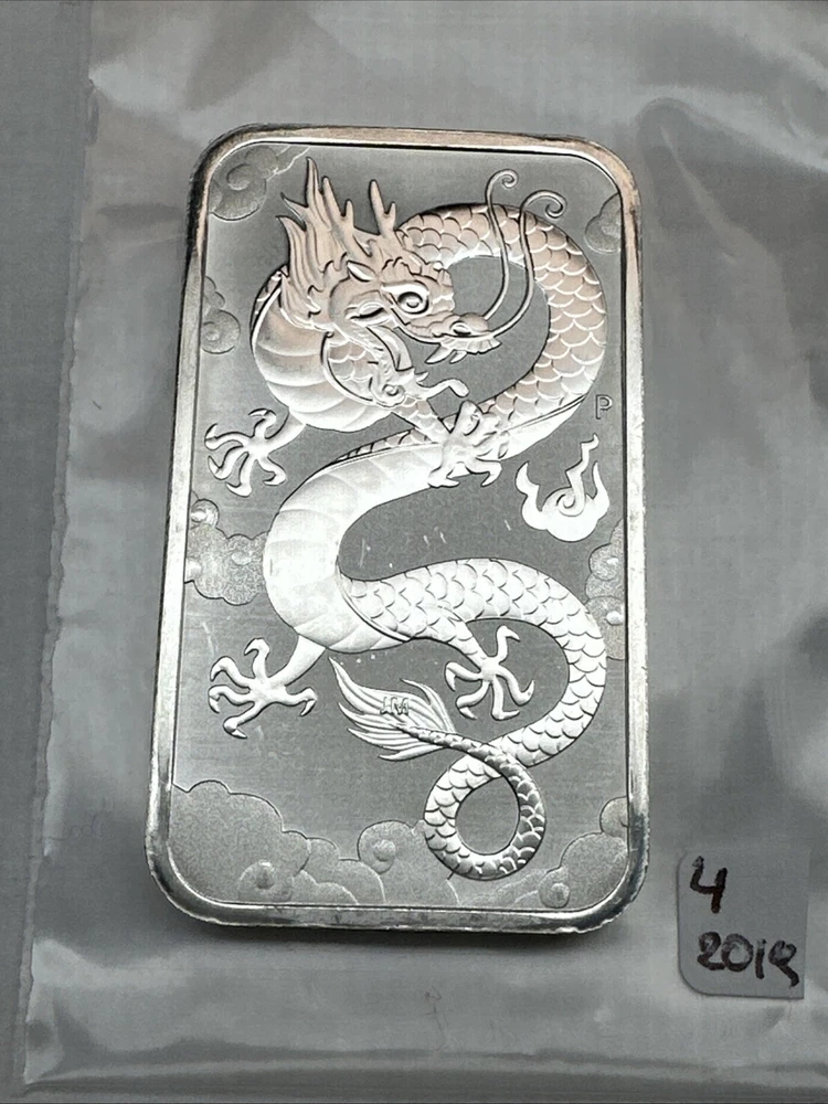 2019 Australia Dragon bar 1 oz Silver 0.9999 $1 Perth Mint Bar