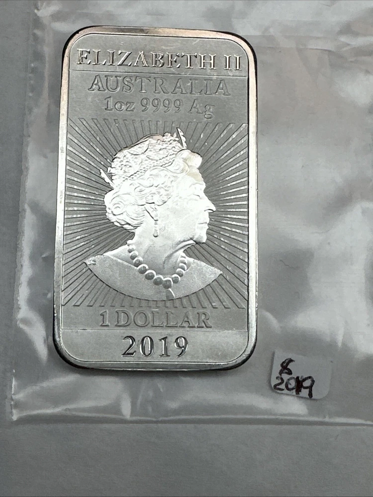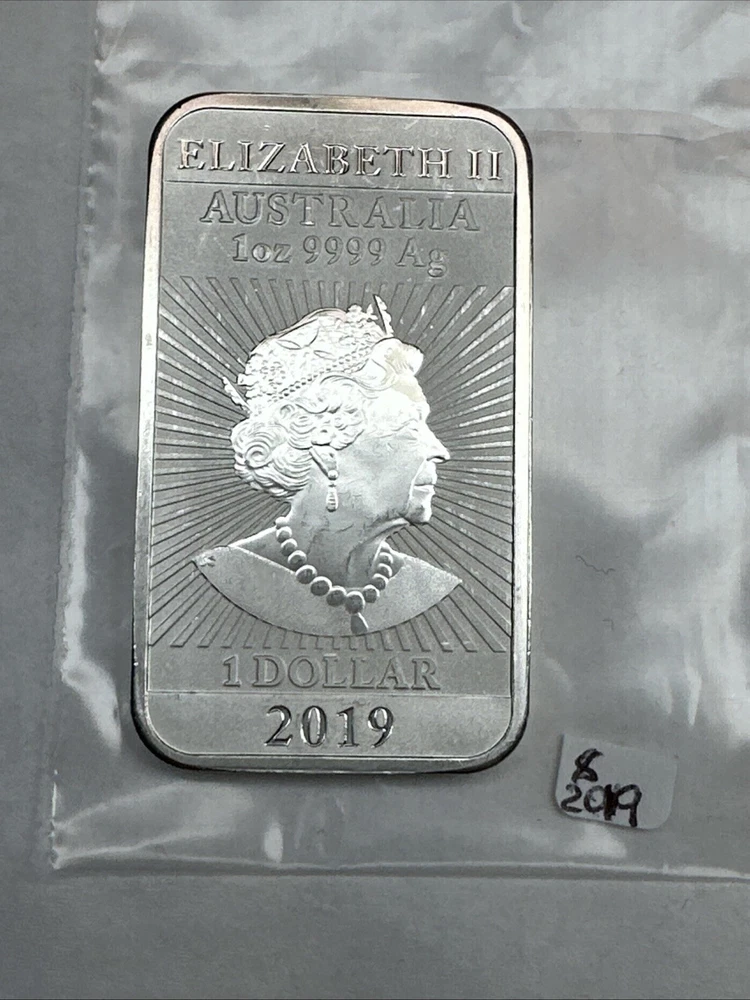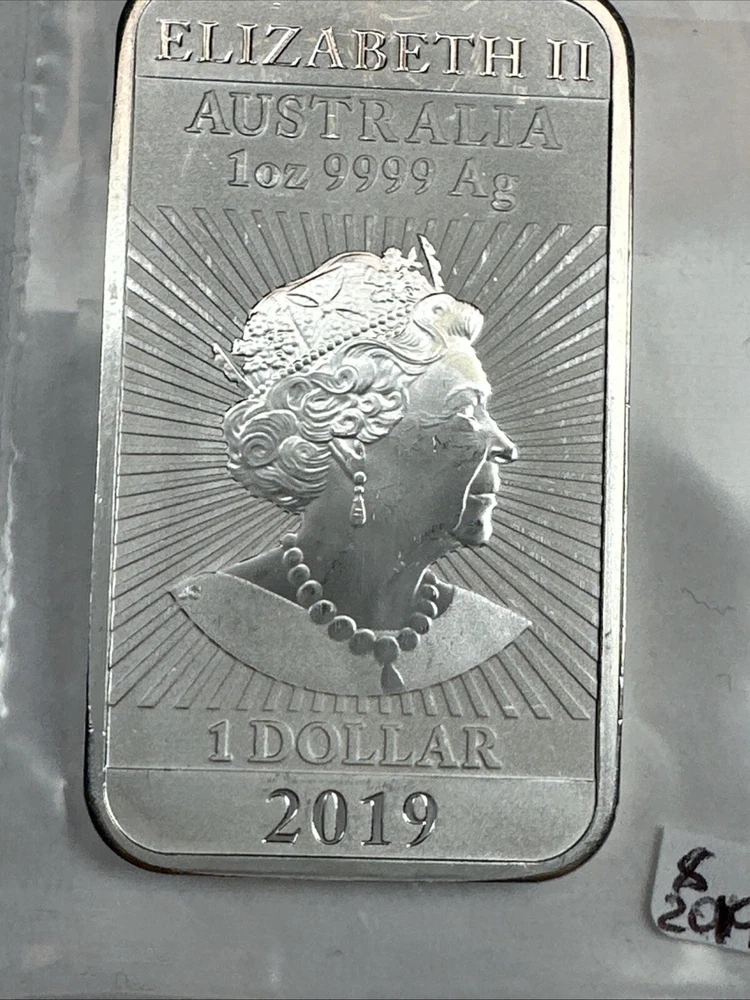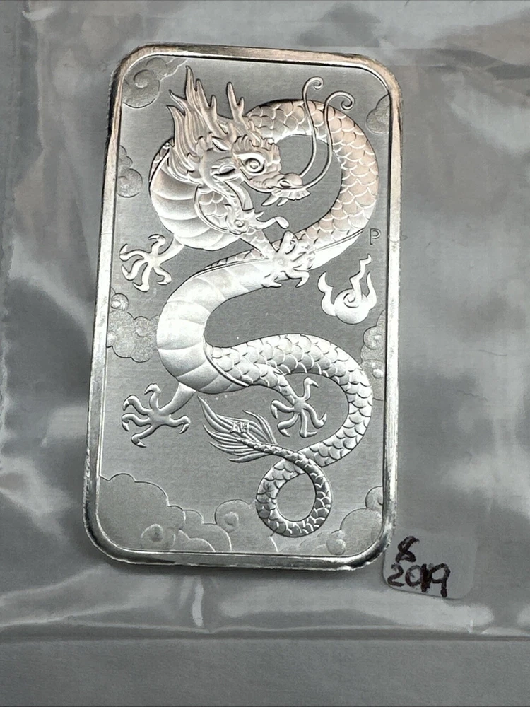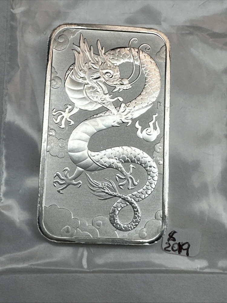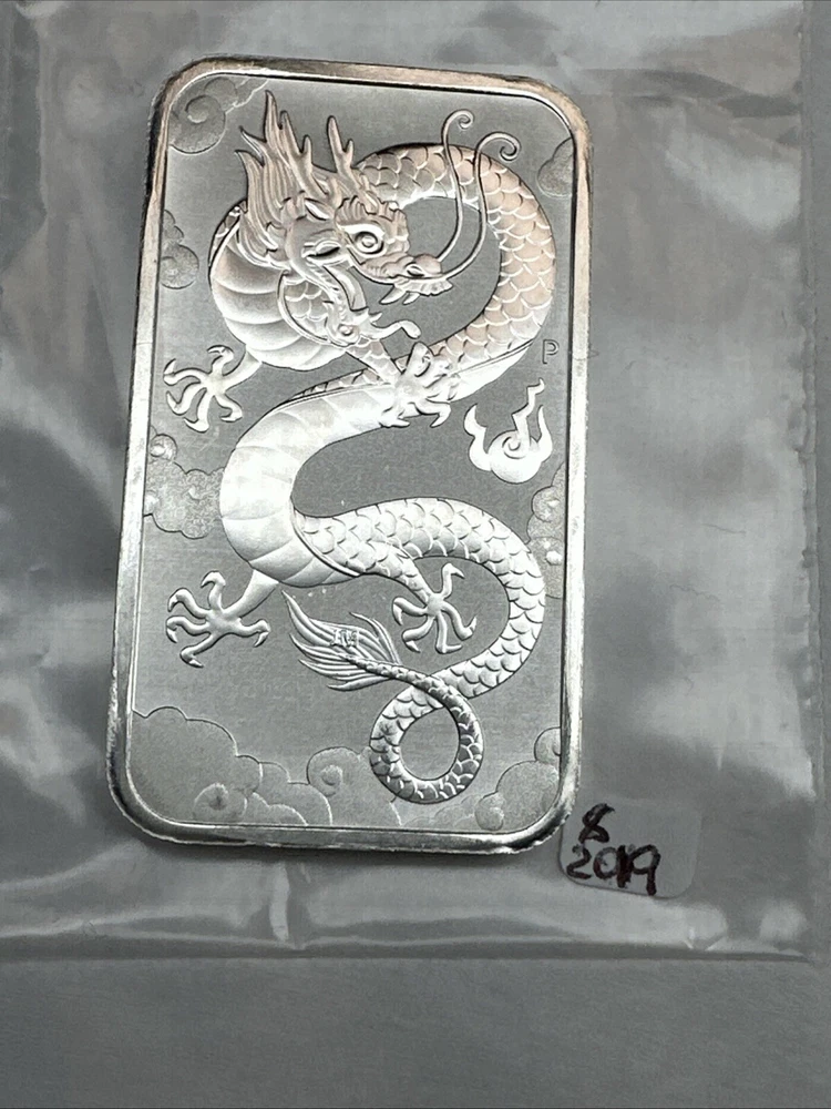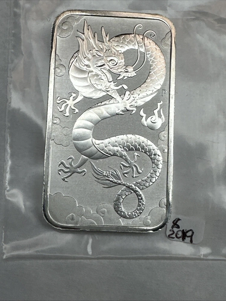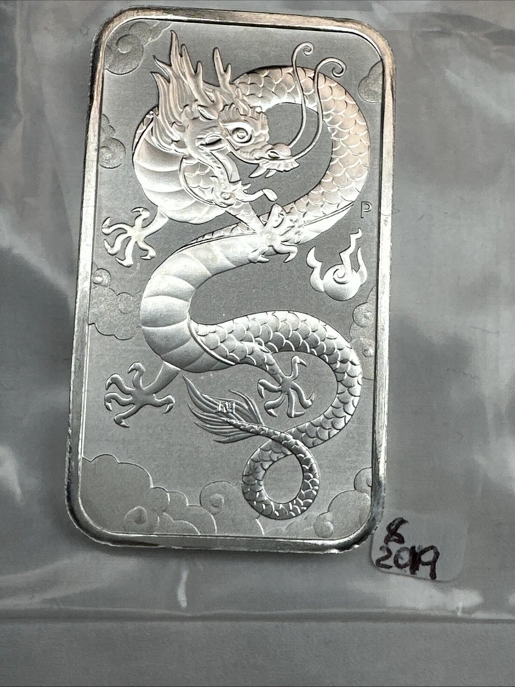 2019 Australia Dragon bar 1 oz Silver 0.9999 $1 Perth Mint Bar