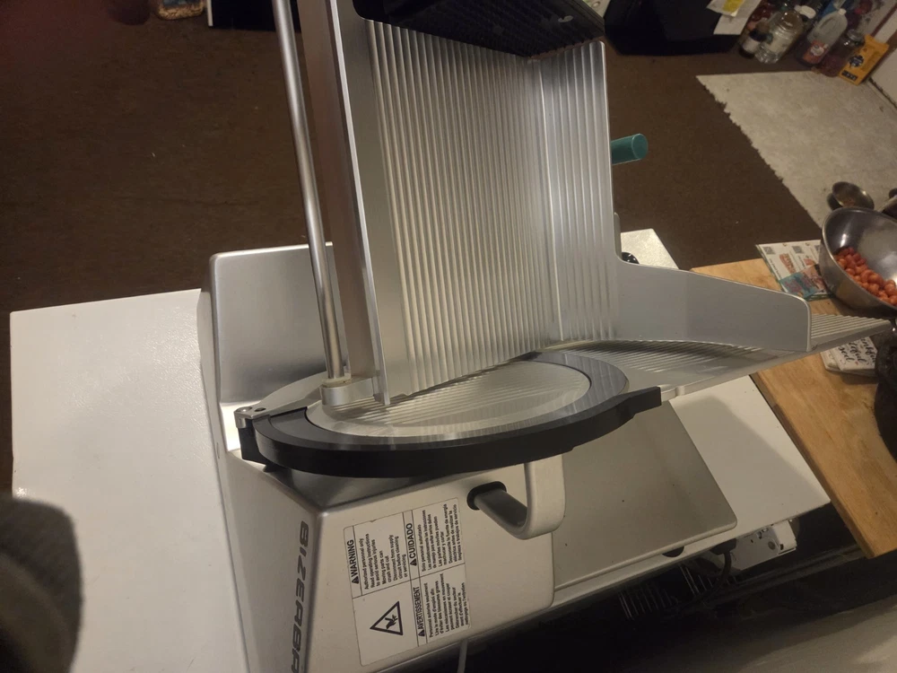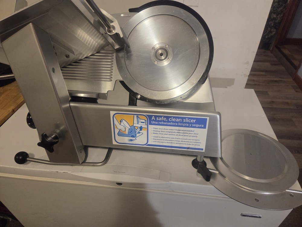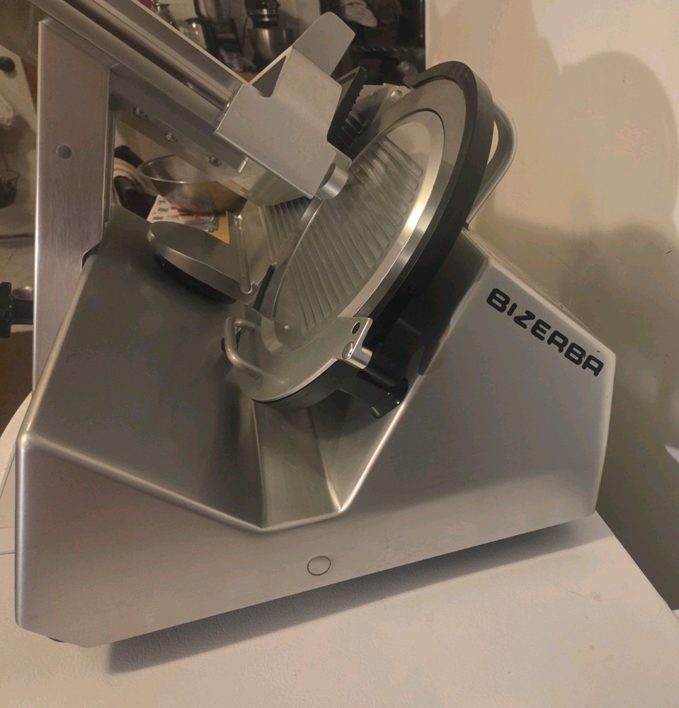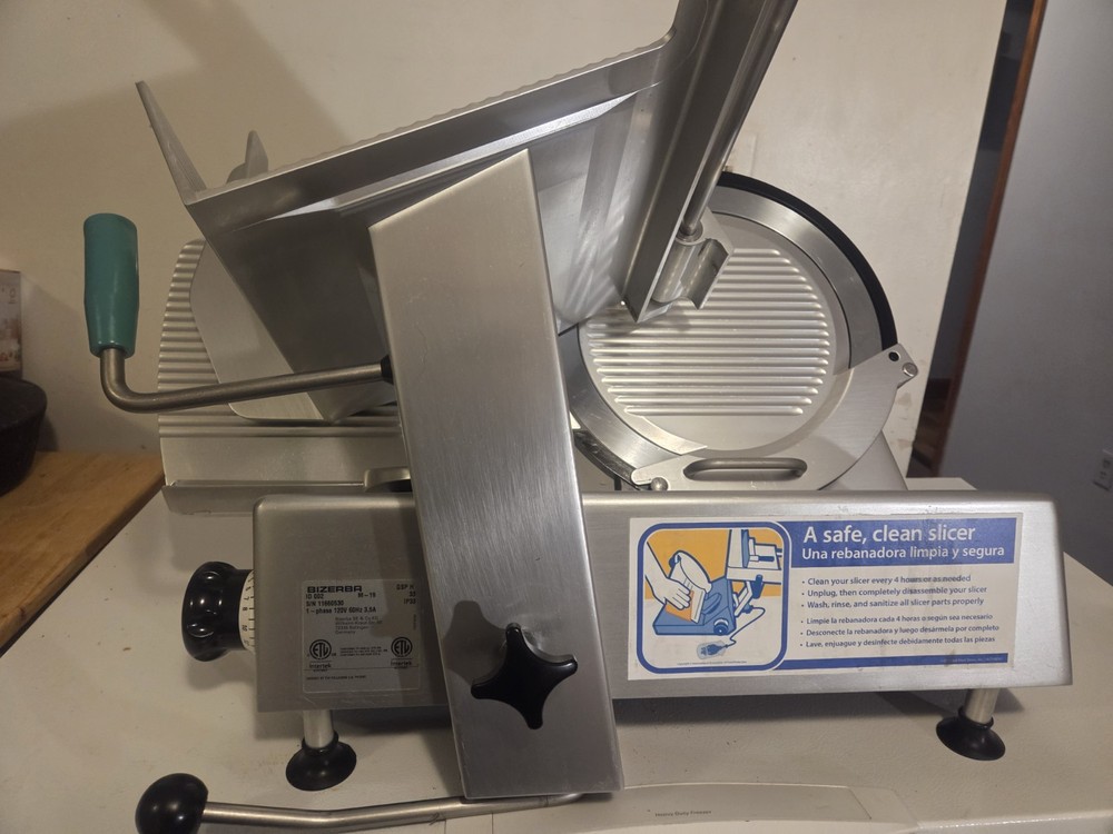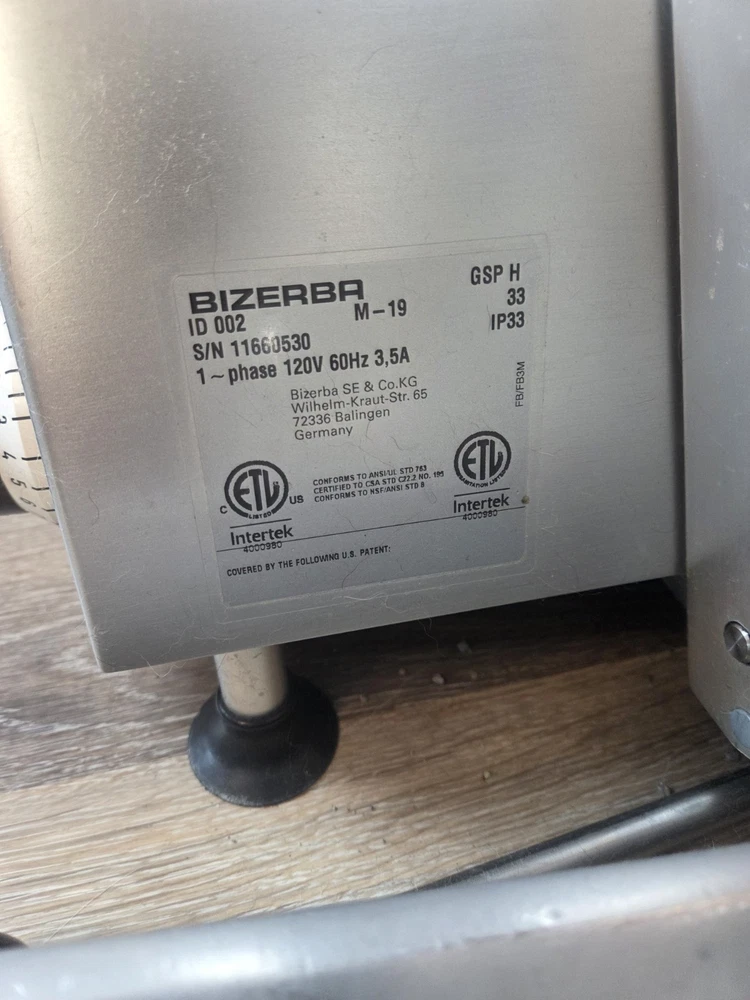 Bizerba GSP H 33 Manual Gravity fed slicer. Features a 13" blade, 1 phase, 120v, 60Hz, 3,5A This pre-owned Bizerba Slicer was removed from a local grocery that went out of business. Cleaned and tested, this is working an in fantastic shape. S/N 11660530