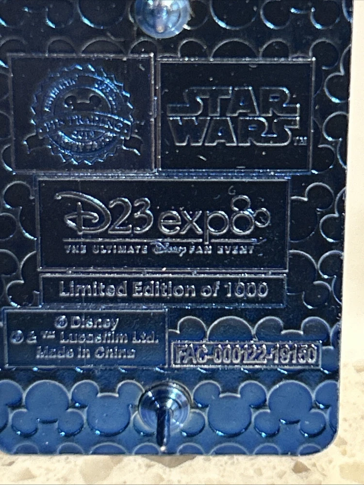 Character/Story/Theme: Star Wars Country/Region of Manufacture: China Brand: Disney Convention/Event: D23 Expo Theme: star wars pin Exclusive: Yes Type: Single Franchise: Disney Modified Item: No Year: 2019