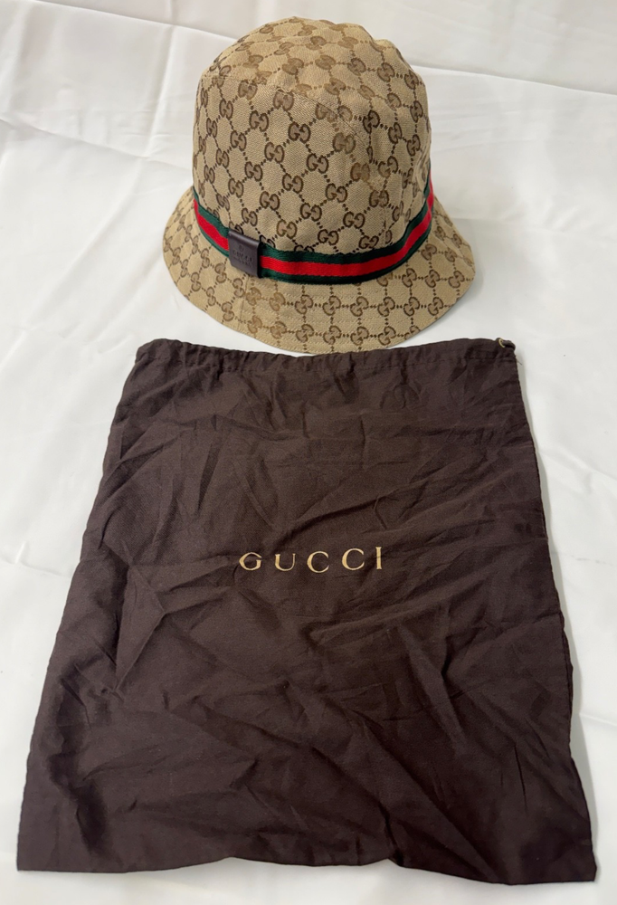 2019 GUCCI GG Canvas Bucket Hat Vintage Monogram Size Large Made In Italy Cap