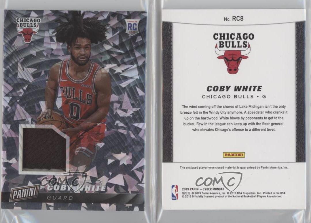 2019 Panini Cyber Monday - Rookies - Cracked Ice Materials #RC8 Coby White Qty Made: 25 - Rookie - MultiSport Card - Featuring the Chicago Bulls - Featuring Coby White Search for more: 2019 Panini Cyber Monday Search for more: 2019 Panini Cyber Monday - Rookies - Cracked Ice Materials View all of our Listings Auctions Buy It Now About Us Located in the beautiful Pacific Northwest, COMC (Check Out My Cards) is the world's largest consignment service for trading card singles. More than 10,000 people have used our consignment service to list over 50 million trading cards. Find out how we can help you consign your items on eBay by contacting us through eBay messaging. COMC -- "The Safe & Easy Way to Buy & Sell" Representative Image - Select Specific Item above to see image of actual item Representative Image - Select Specific Item above to see image of actual item Raw Condition for Modern Cards Unless otherwise noted, raw modern cards are listed in Near Mint-Mint condition or better. A NM-MT card appears to be Mint at first glance, but upon closer inspection, may exhibit some of the following: minor print defects (e.g. roller marks, print line, dimple), minor scratches, slight edge wear, and slight corner wear. Centering is clearly visible in the images provided and does not factor into our condition assessment. Raw Condition for Vintage Cards Unless otherwise noted, raw vintage cards are listed in Excellent condition or better. An EX card may exhibit some of the following: minor rounding of corners, surface wear, print defects, light scratches, and slight edge wear/chipping. Centering is clearly visible in the images provided and does not factor into our condition assessment. Domestic Shipping Combined shipping for multiple items is available. To receive combined shipping, please ensure all desired items are in your eBay shopping cart before proceeding to checkout. eBay limits orders to 40 items per order. We automatically combine multiple orders placed on the same day. If you place multiple orders on the same day, please contact us to request a refund of applicable shipping costs. Signature confirmation may be required on invoices over $400. All cards are protected and shipped securely. International Shipping COMC offers eBay's International Shipping (EIS) for international orders under $2,500* (see country exceptions below). All duties and import fees are paid at checkout; in the rare event that there are additional import fees upon delivery, these are borne by the buyer. EIS packages route through a shipping hub in Erlanger, KY before shipping to their final destination. Please note that EIS does not allow for combined shipments. The shipping rates are determined by eBay and cannot be adjusted. *Maximum sale price exceptions: Colombia, Kuwait ($2,000); Taiwan ($1,539); Chile, Costa Rica, Guatemala, Honduras, Trinidad and Tobago ($1,000); Antigua and Barbuda, Aruba, Belize, Dominica, Grenada, Philippines, Saint Kitts and Nevis, Saint Lucia, Montserrat, Turks and Caicos Islands ($500); Dominican Republic, El Salvador ($200). Please request a shipping quote through eBay messaging for orders that exceed the maximum sale price supported by eBay's International Shipping. You will be responsible for all duties and import fees for international orders shipped outside the EIS. All cards are protected and shipped securely. Payment COMC does not accept offers on our cards through our eBay storefront. COMC utilizes eBay’s managed payments system. If you are experiencing difficulties making a payment, please contact eBay for assistance. Return Policy Returns are only accepted on the rare occasion the item is not as described. If you are making a return, please initiate the return process through eBay so a mailing label can be provided for you. Prior to listing, our expert team carefully assessed this item to represent it accurately. Please review the description and high-definition images prior to purchasing to ensure this item meets your satisfaction. We welcome you to contact us if you have further questions about this item. Trust and Integrity COMC carefully assesses each item consigned to us to prevent fraudulent items from entering the marketplace. If you believe an item offered on COMC may be fraudulent, please contact us with details so we can investigate the issue. Items we determine are outside our supported items policy may be removed. Last Modified: 1/28/2025 9:07:09 AM PDT