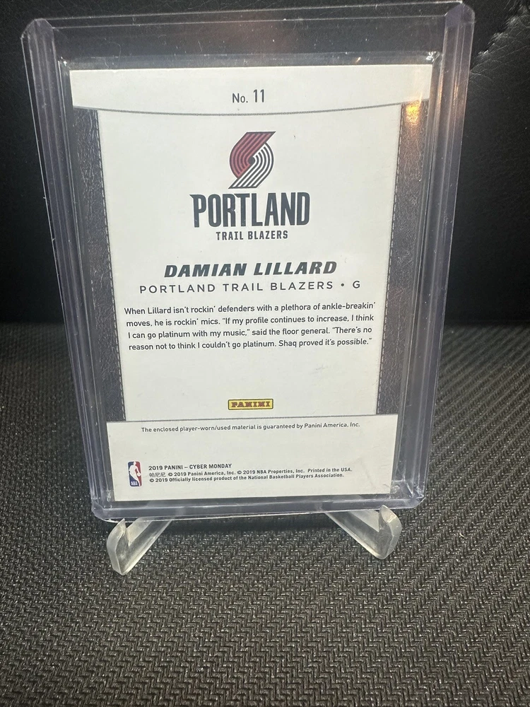This 2019 Panini Cyber Monday sports trading card featuring Damian Lillard, player from the National Basketball Association (NBA), is a must-have for any fan or collector. The card boasts a unique Hyperplaid parallel/variety and features a jersey patch with a serial number of 4/5, making it an exclusive short print memorabilia. The card is manufactured by Panini and belongs to the 2019 set, with card number 11. It is a great addition to any collection and a perfect gift for any Milwaukee Bucks fan. Get your hands on this rare card before it's too late!