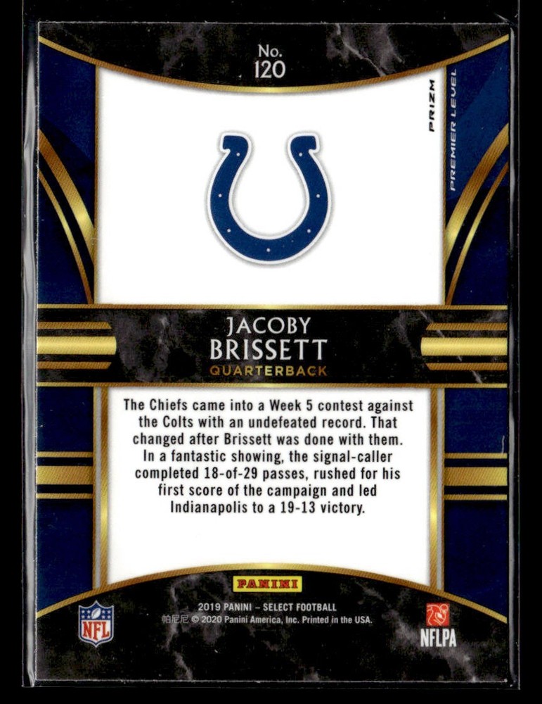 This card is a must-have for collectors! The silver Prizm finish makes Jacoby Brissett’s 2019 Select Premier Level card pop with sharp detail. The design is sleek, and the quality feels premium. A great addition to any NFL or Colts fan’s collection—definitely stands out!