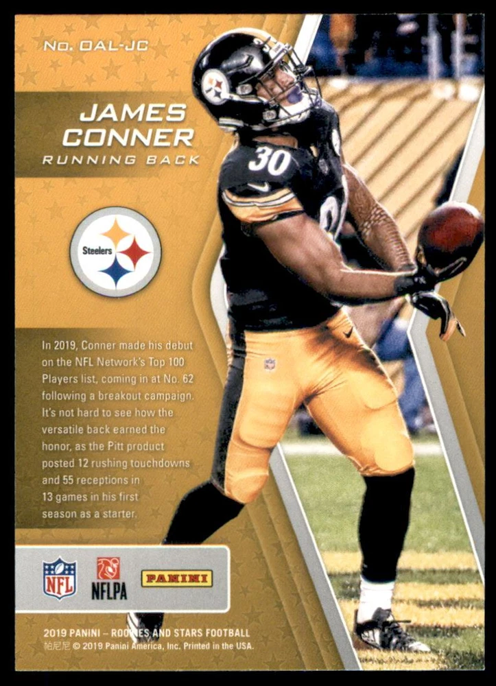 2019 Rookies and Stars On Another Level #16 James Conner Front Back Sport: Football Set: 2019 Rookies and Stars On Another Level Year: 2019 Item#: 16 Player: James Conner Team: Pittsburgh Steelers Brand: Rookies and Stars Manufacturer: Panini Group Grading Company: Raw Grade SetType: Insert Item Condition: Near Mint/Mint 2014 Beckett Collectibles, LLC. All Rights Reserved Powered by: Thank you for choosing Burbank Sportscards, the sports cards superstore. We offer a large selection of singles across all sports. Visit our ebay store to view all our items available. Our Shipping Policy We offer Free Standard Shipping to all Domestic customers. Options for Expedited shipping are also available at checkout. For our international customers, shipping is $9.99 for the first item, and $0.25 for each additional item. Note to all customers: To qualify for combines shipping, we ask our customers to add items into the shopping cart. Please note, we do not combine orders that are placed separately. Our Service: Generally, our turnaround is super quick as we process and send out orders same day payment is received. Stock Availability: We do our best to ensure all items are in stock; however, in case of the rare stock out, the customer will have the option for a replacement card, or we will process a refund so the order is not held up. Our Images: Many of our images are stock photos from Beckett archives. They are a representation of the actual card you would receive. If you have any questions regarding the item you're interested in, please feel free to ask (serial numbers and relic pieces may vary) Moreover, in a case of a wrong or defective photo, please notify us, so we can adjust it. Other FAQ's: -When buying multiple cards, do you top load each item? No; however, we do try to insure all items are shipped securely. If you wish to have all of your cards top loaded it is a paid service and can be arranged. Please email for more details. For other questions, please feel free to ask. Thank you.