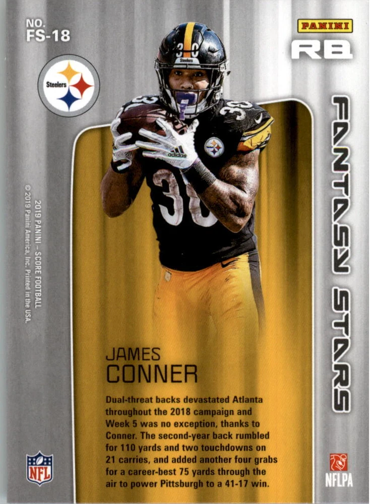 2019 Score Fantasy Stars #18 James Conner Front Back Sport: Football Set: 2019 Score Fantasy Stars Year: 2019 Item#: 18 Player: James Conner Team: Pittsburgh Steelers Brand: Score Manufacturer: Panini Group Grading Company: Raw Grade SetType: Insert Item Condition: Near Mint/Mint 2014 Beckett Collectibles, LLC. All Rights Reserved Powered by: Thank you for choosing Burbank Sportscards, the sports cards superstore. We offer a large selection of singles across all sports. Visit our ebay store to view all our items available. Our Shipping Policy We offer Free Standard Shipping to all Domestic customers. Options for Expedited shipping are also available at checkout. For our international customers, shipping is $9.99 for the first item, and $0.25 for each additional item. Note to all customers: To qualify for combines shipping, we ask our customers to add items into the shopping cart. Please note, we do not combine orders that are placed separately. Our Service: Generally, our turnaround is super quick as we process and send out orders same day payment is received. Stock Availability: We do our best to ensure all items are in stock; however, in case of the rare stock out, the customer will have the option for a replacement card, or we will process a refund so the order is not held up. Our Images: Many of our images are stock photos from Beckett archives. They are a representation of the actual card you would receive. If you have any questions regarding the item you're interested in, please feel free to ask (serial numbers and relic pieces may vary) Moreover, in a case of a wrong or defective photo, please notify us, so we can adjust it. Other FAQ's: -When buying multiple cards, do you top load each item? No; however, we do try to insure all items are shipped securely. If you wish to have all of your cards top loaded it is a paid service and can be arranged. Please email for more details. For other questions, please feel free to ask. Thank you.