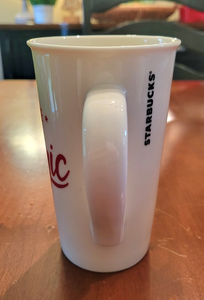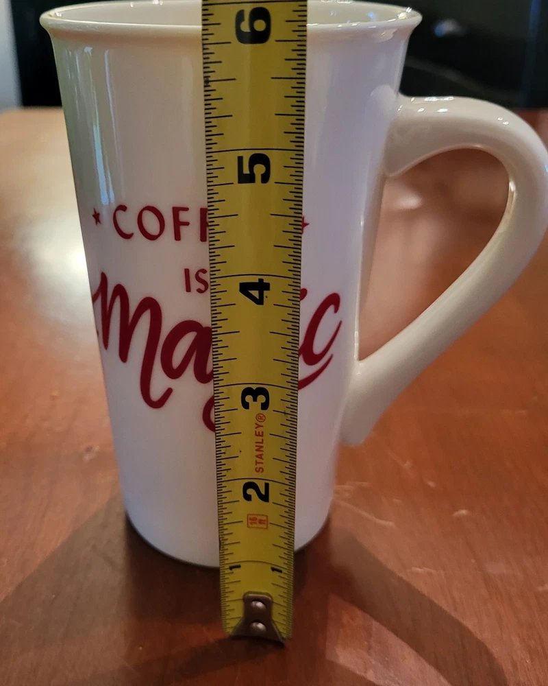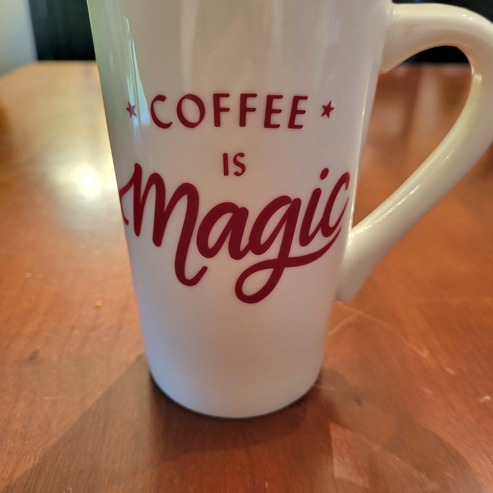 The 2019 Starbucks Ceramic Coffee Mug is a sleek and stylish 16 oz Grande Tall coffee mug white and red lettering design that is sure to delight any coffee lover "Coffee is Magic". Made by Starbucks and crafted in China, this original collectible item exudes a coffee and tea theme, making it a perfect addition to any Starbucks enthusiast's collection. Perfect for enjoying your favorite hot beverages in style.