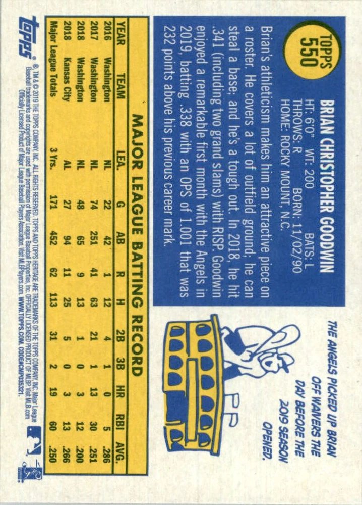2019 Topps Heritage #550 Brian Goodwin Front Back Sport: Baseball Set: 2019 Topps Heritage Year: 2019 Item#: 550 Player: Brian Goodwin Team: Los Angeles Angels Brand: Topps Heritage Manufacturer: Topps Co. Grading Company: Raw Grade SetType: Main Item Condition: Near Mint/Mint 2014 Beckett Collectibles, LLC. All Rights Reserved Powered by: Thank you for choosing Burbank Sportscards, the sports cards superstore. We offer a large selection of singles across all sports. Visit our ebay store to view all our items available. Our Shipping Policy We offer Free Standard Shipping to all Domestic customers. Options for Expedited shipping are also available at checkout. For our international customers, shipping is $9.99 for the first item, and $0.25 for each additional item. Note to all customers: To qualify for combines shipping, we ask our customers to add items into the shopping cart. Please note, we do not combine orders that are placed separately. Our Service: Generally, our turnaround is super quick as we process and send out orders same day payment is received. Stock Availability: We do our best to ensure all items are in stock; however, in case of the rare stock out, the customer will have the option for a replacement card, or we will process a refund so the order is not held up. Our Images: Many of our images are stock photos from Beckett archives. They are a representation of the actual card you would receive. If you have any questions regarding the item you're interested in, please feel free to ask (serial numbers and relic pieces may vary) Moreover, in a case of a wrong or defective photo, please notify us, so we can adjust it. Other FAQ's: -When buying multiple cards, do you top load each item? No; however, we do try to insure all items are shipped securely. If you wish to have all of your cards top loaded it is a paid service and can be arranged. Please email for more details. For other questions, please feel free to ask. Thank you.