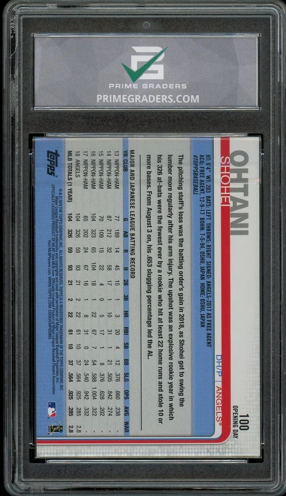 2019 Topps Opening Day #100 Shohei Ohtani PRIME GRADED 10 GEM Mint