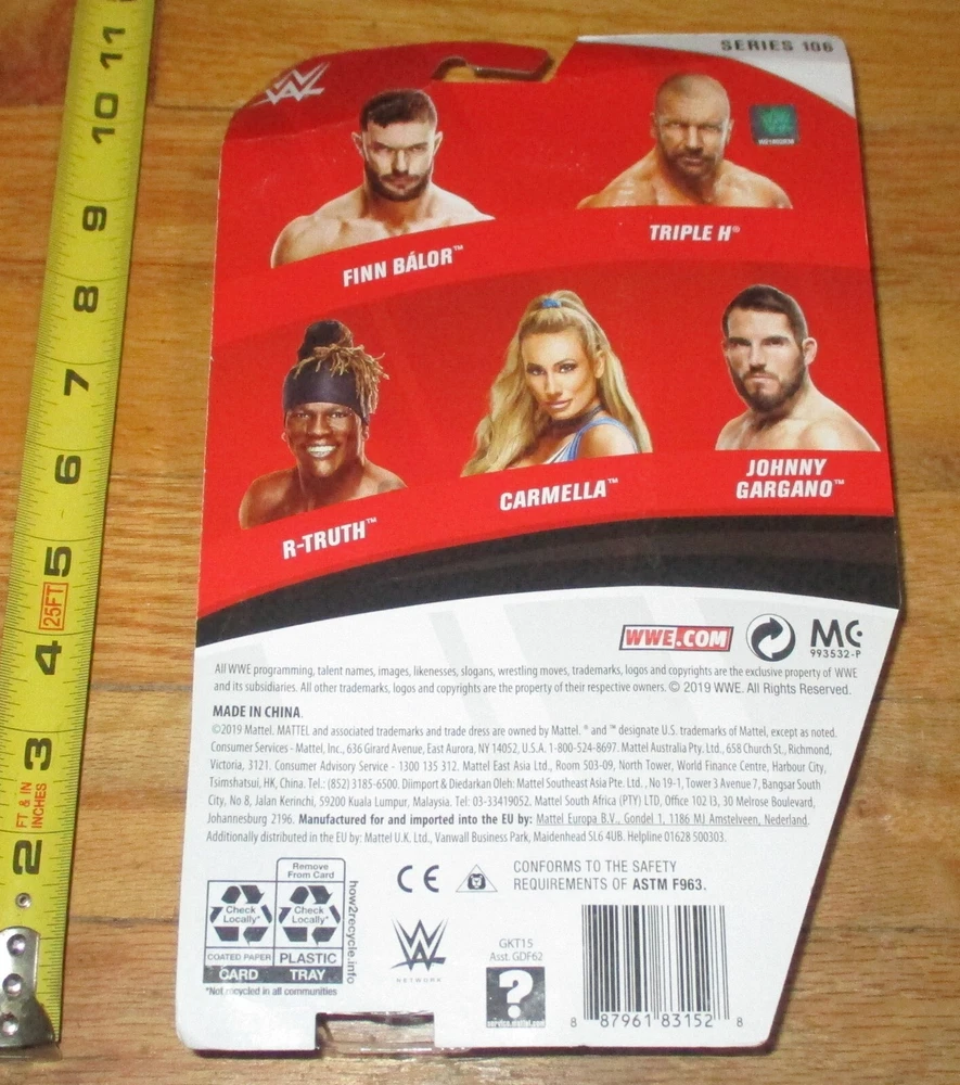 This item is a WWE WWF Mattel in Package figure of WWF WWE NXT Smackdown DIY Wrestling star Johnny Gargano. He was produced in 2019 by Mattel as part of Basic Series 106. He is on his sealed card but the card has a couple of significant creases to the top part of the card and some additional wear to the edges and corners as can be seen in the photos. Shipping outside of the United States will be extra. Please check out my other wrestling auctions and contact me with any questions or wrestling related item requests. Serious bidders only as negative comments will be placed if bids are not completed. Good Luck