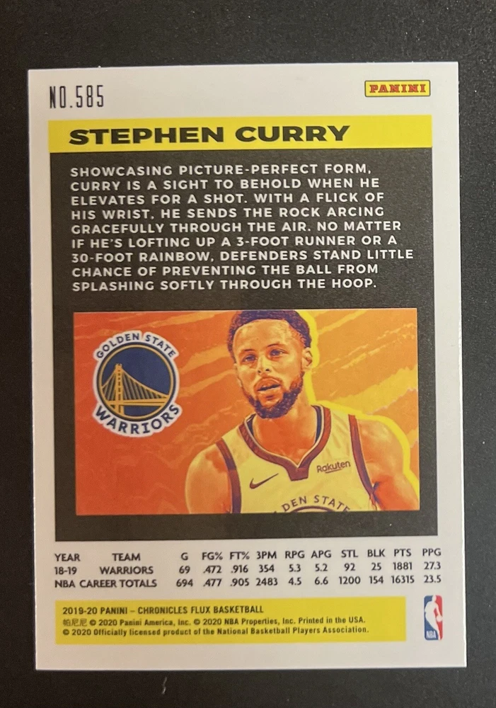 2019-20 Chronicles Flux Stephen Curry Prizm #585 Warriors