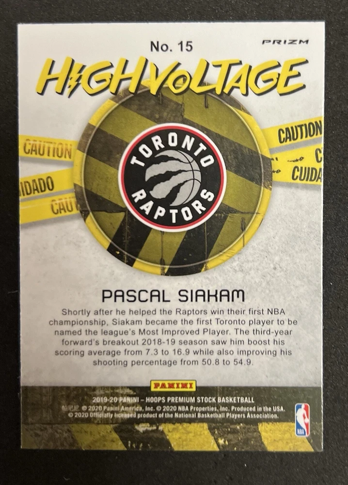 2019-20 Panini NBA Hoops Premium Stock High Voltage Flash Pascal Siakam #15