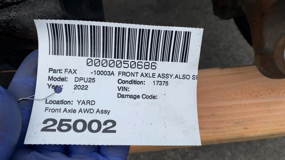Donut Auto Dismantling Donut Auto Dismantling Rancho Cordova, CA Business Hours (PST/PDT) Mon - Fri 8am - 5pm Closed Sat & Sun Front Axle Assy.also See Crr Year: 22 Model: DODGE PICKUP 2500 Side: Type: Used Category: ND Condition: 17375 Vehicle Stock #: 25002 Part Stock #: 0000050686 Additional notes: Front Axle Awd Assy Interchange: 3.73 ratio Also fits: DODGE RAM PICKUP 2500 SERIES 19-23 3.73 ratio DODGE RAM PICKUP 3500 SERIES 19-21 SRW, 3.73 ratio Search for more parts from this donor vehicle Search for more parts for DODGE PICKUP 2500 Dear Valued Customers Before ordering, please verify the part number and compare the physical details of your part with the photos in our listing. Tesla sometimes changes parts within the same model year, so even if the year matches, variations may exist. Examine all photos and read the description. Please contact us and ask any questions you have about the item. What you see in the pictures is what you will receive. Item are sold as Pictured in our ads, All the damages are marked in pictures with colored markings ........ indicated scratches, O indicate dents/dings view all photos and description. All Parts come with a 30-Day warranty Compatibility We are not responsible for compatibility, please order parts with the same part number to avoid delays and fitment issues in your purchase. Always verify O.E.M part numbers check fitment. Shipping & Return Policy For LTL and freight shipments of large items like Battery Packs, Seats, Doors, Trunks, Hoods, and other sizable body parts, a commercial address is mandatory . This must be a business equipped with a dock or forklift. Please note that deliveries cannot be made to restaurants, office buildings, or hotels. Please allow 5-11 business days from the shipping date to receive freight items. If a forklift is not available to unload your package, please ensure that you added liftgate service fee to your order. Residential deliveries have an extra charge required by LTL to cover liftgate usage and city ordinance. Be advised not all LTL freight companies offer lift gate services in every town especially in rural areas. If you do not have a commercial address or a proper residential address reach out to us to work things out LTL items can always be held at your local hub and made available for pickup. We offer free local pickup Monday through Friday, from 8:00 AM to 5:00 PM. What separates us from our competitors As Pioneers in the Tesla used parts market Donut Auto Parts is leading in the industry. We have been specializing in Tesla's for over 5 years. Our Staff are highly trained and experienced Tesla specialists. We strive to help you solve all your part needs. Local Customers For our local customers we provide installation on battery packs and drive units purchase. Drive unit and battery pack installations come with a 60 day warranty . All parts are fully tested. Using the industries leading tools, we also provide installation of other parts. Please reach out to us directly for more information. Be Advised Programming may be required for most electronic components. Donut Auto Parts is not responsible for any labor costs and other charges such as programming. NO RESTOCKING FEE Payment Payment must be submitted within 48 hours after purchase time. We have a Same handling time when paid by 2pm pst and 3-day handling time for LTL freight items. Feedback and Rating We always Strive to earn positive feedback. If you encounter an issue with one of our items, please contact us before leaving any feedback or opening a case give us the opportunity to solve your order issue. We strive to provide excellent customer service to ensure that everyone is satisfied, and to gain happy and returning customers! ALLOW US TO RESOLVE ISSUES BEFORE LEAVING YOUR FEEDBACK PLEASE CONTACT US FIRST Airbag Notification If the item above is an airbag, I certify this airbag is not subject to recall and will be shipped in accordance with hazmat shipping requirements . Powered by Checkmate