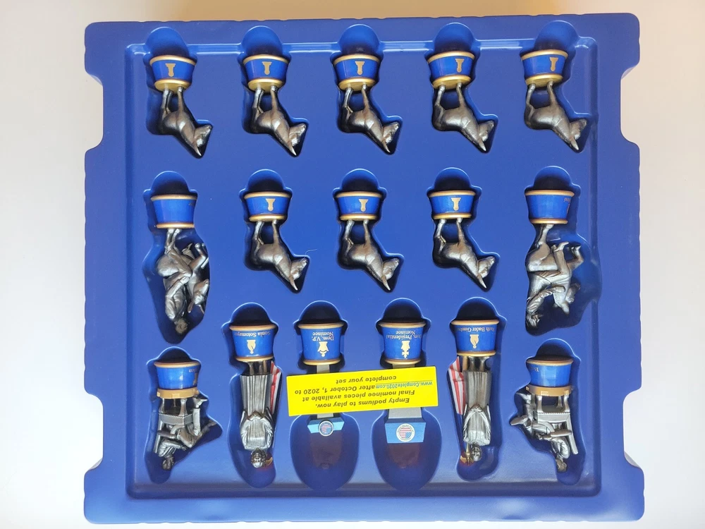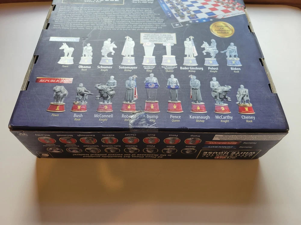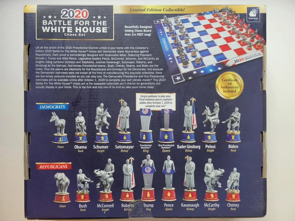 Experience the intense battle for the White House with the limited edition Trump Chess Set, featuring iconic political figures such as Pence, Biden, and Obama. This exquisite collectors' item is made of premium metal and boasts intricate, tournament chess compliant design for an authentic gameplay experience. The multi-color chess set is perfect for ages 10 and up, making it an ideal gift for chess enthusiasts and political aficionados alike. With no modifications and no custom bundles, this premium chess set is a must-have addition to any contemporary chess collection. The exquisite design and high-quality materials make this an investment that will last for years to come.