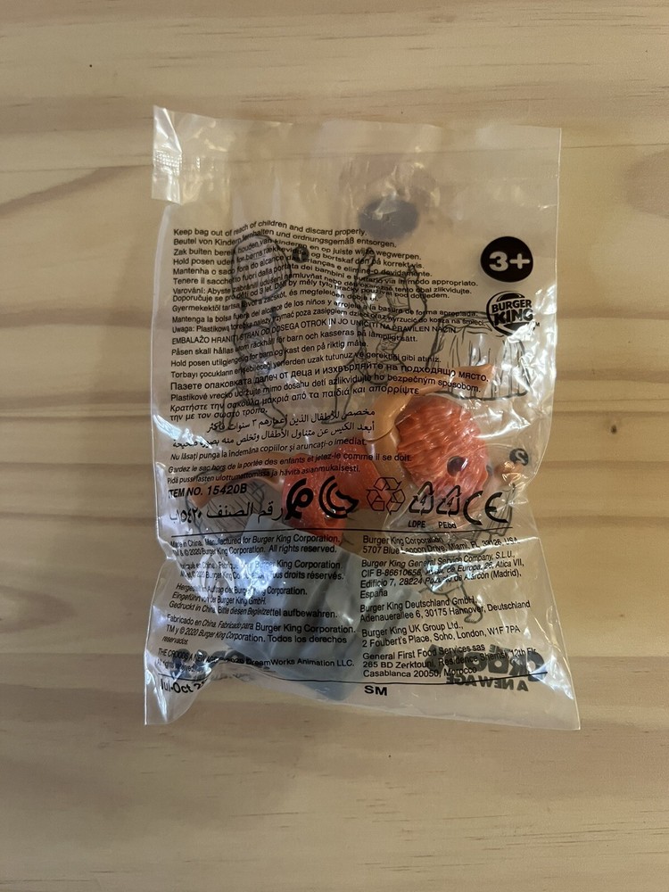 The 2020 Burger King Kids Meal Toy featuring The Croods 2 character EEP is part of a set of individual pieces released by Burger King as part of their kids meal promotion. The toy is recommended for children aged 4 and up and is suitable for both boys and girls. The character family associated with this toy is The Croods, tying in with the release of The Croods 2: A New Age film.