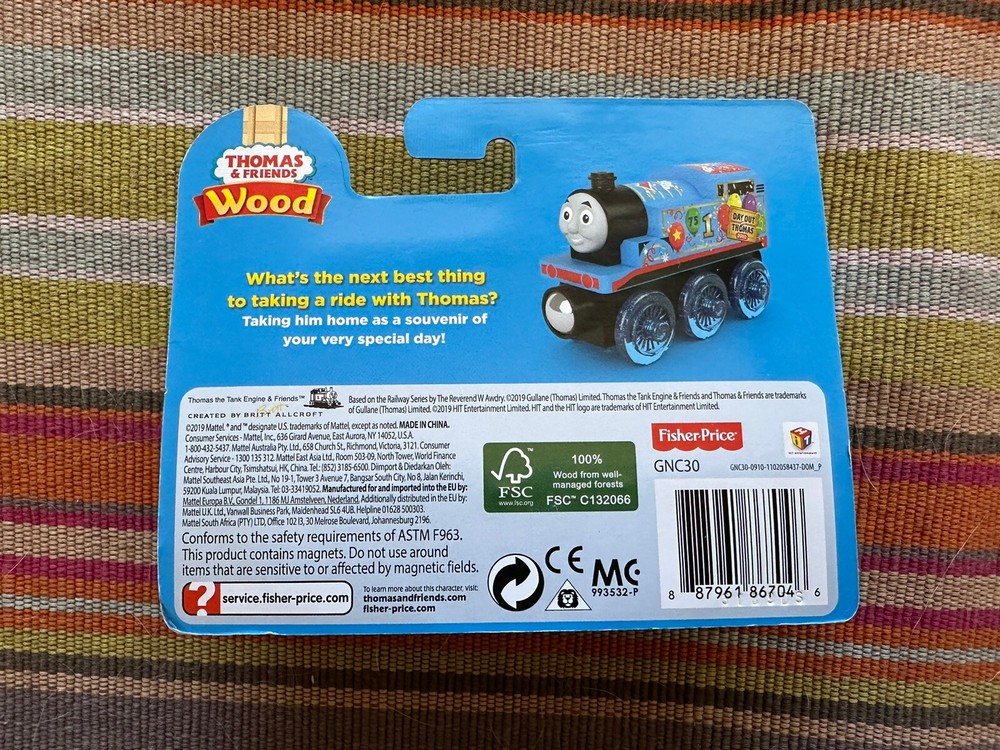 UPC:Does not applygtin13:Does not applyCharacter:Thomas the Tank EngineGender:Boys & GirlsRecommended Age Range:3+Character Family:Thomas & FriendsType:Action FigureBrand:Fisher-PriceYear Manufactured:2020Theme:Cartoon & TV CharacterVehicle Type:TrainCountry of Origin:ChinaMaterial:Wood