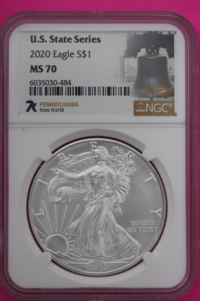 2020 MS 70 American Silver Eagle Pennsylvania State Series NGC Certified 525
