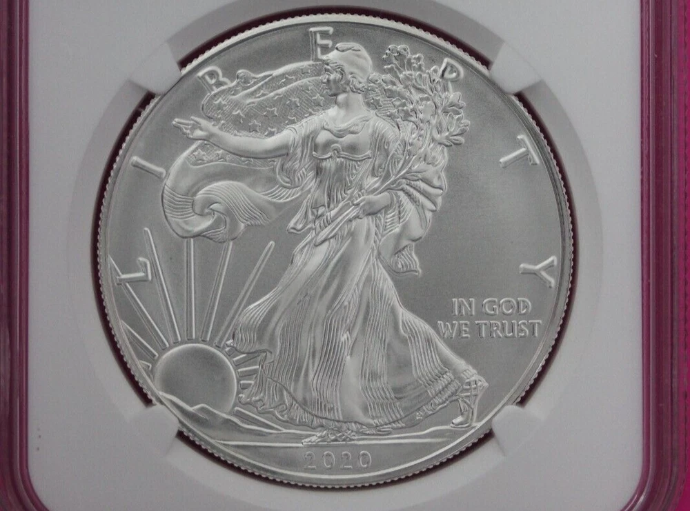 Total Precious Metal Content: 1 Troy Ounce Composition: Silver Year: 2020 Shape: Coin Grade: MS 70 Brand: U.S. Mint Precious Metal Content per Unit: 1 oz Country/Region of Manufacture: United States Strike Type: Satin Fineness: 0.999 Coin: American Eagle Certification: NGC Brand/Mint: U.S. Mint