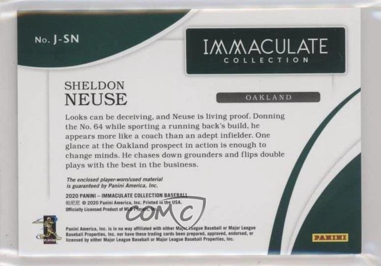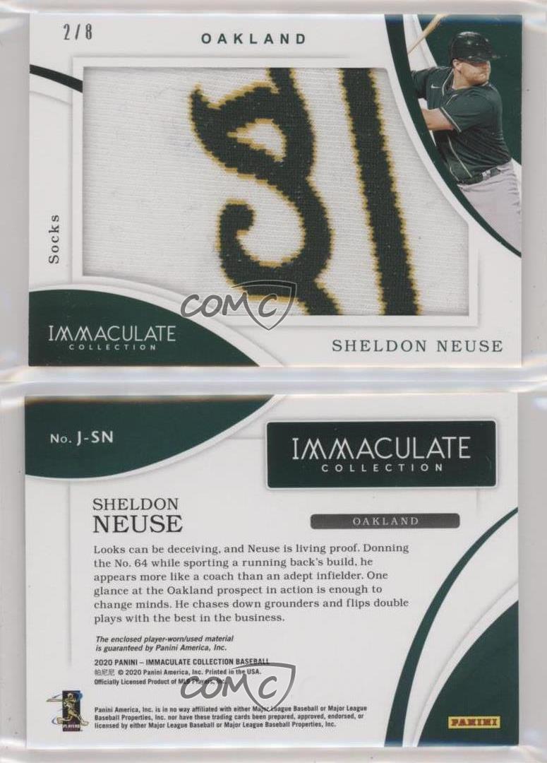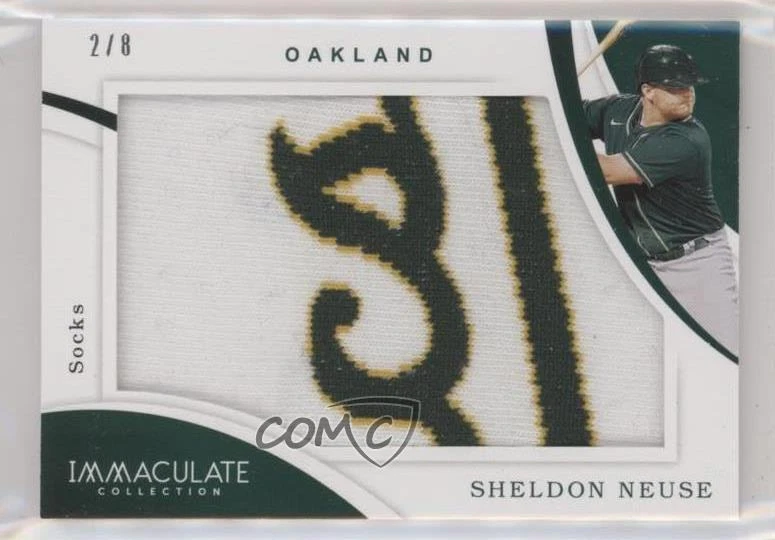 2020 Panini Immaculate Collection - Jumbo Relics - Socks #J-SN Sheldon Neuse Qty Made: 8 - Rookie - Baseball Card - Featuring the Oakland Athletics - Featuring Sheldon Neuse Search for more: 2020 Panini Immaculate Collection Search for more: 2020 Panini Immaculate Collection - Jumbo Relics - Socks View all of our Listings Auctions Buy It Now About Us Located in the beautiful Pacific Northwest, COMC (Check Out My Cards) is the world's largest consignment service for trading card singles. More than 10,000 people have used our consignment service to list over 50 million trading cards. We currently house 20 million cards, each listed for sale with front and back images of the actual card. Find out how we can help you consign your items on eBay by contacting us through eBay messaging. COMC -- "The Safe & Easy Way to Buy & Sell" Representative Image - Select Specific Item above to see image of actual item Representative Image - Select Specific Item above to see image of actual item Raw Condition for Modern Cards Unless otherwise noted, raw modern cards are listed in Near Mint-Mint condition or better. A NM-MT card appears to be Mint at first glance, but upon closer inspection, may exhibit some of the following: minor print defects (e.g. roller marks, print line, dimple), minor scratches, slight edge wear, and slight corner wear. Centering is clearly visible in the images provided and does not factor into our condition assessment. Raw Condition for Vintage Cards Unless otherwise noted, raw vintage cards are listed in Excellent condition or better. An EX card may exhibit some of the following: minor rounding of corners, surface wear, print defects, light scratches, and slight edge wear/chipping. Centering is clearly visible in the images provided and does not factor into our condition assessment. Domestic Shipping Combined shipping for multiple items is available. To receive combined shipping, please ensure all desired items are in your eBay shopping cart before proceeding to checkout. eBay limits orders to 40 items per order. We automatically combine multiple orders placed on the same day. If you place multiple orders on the same day, please contact us to request a refund of applicable shipping costs. Signature confirmation may be required on invoices over $400. Raw cards are shipped in toploaders. International Shipping COMC offers eBay's International Shipping (EIS) for international orders under $2,500* (see country exceptions below). All duties and import fees are paid at checkout; in the rare event that there are additional import fees upon delivery, these are borne by the buyer. EIS packages route through a shipping hub in Erlanger, KY before shipping to their final destination. Please note that EIS does not allow for combined shipments. The shipping rates are determined by eBay and cannot be adjusted. *Maximum sale price exceptions: Colombia, Kuwait ($2,000); Taiwan ($1,539); Chile, Costa Rica, Guatemala, Honduras, Trinidad and Tobago ($1,000); Antigua and Barbuda, Aruba, Belize, Dominica, Grenada, Philippines, Saint Kitts and Nevis, Saint Lucia, Montserrat, Turks and Caicos Islands ($500); Dominican Republic, El Salvador ($200). Please request a shipping quote through eBay messaging for orders that exceed the maximum sale price supported by eBay's International Shipping. You will be responsible for all duties and import fees for international orders shipped outside the EIS. Raw cards are shipped in toploaders. Payment COMC does not accept offers on our cards through our eBay storefront. COMC utilizes eBay’s managed payments system. If you are experiencing difficulties making a payment, please contact eBay for assistance. Return Policy Returns are only accepted on the rare occasion the item is not as described. If you are making a return, please initiate the return process through eBay so a mailing label can be provided for you. Prior to listing, our expert team carefully assessed this item to represent it accurately. Please review the description and high-definition images prior to purchasing to ensure this item meets your satisfaction. We welcome you to contact us if you have further questions about this item. Trust and Integrity COMC carefully assesses each item consigned to us to prevent fraudulent items from entering the marketplace. If you believe an item offered on COMC may be fraudulent, please contact us with details so we can investigate the issue. Items we determine are outside our supported items policy may be removed. Last Modified: 1/5/2025 7:33:42 PM PDT