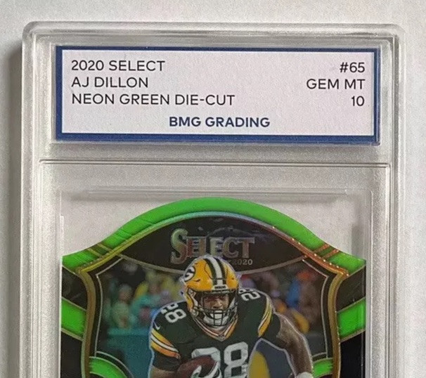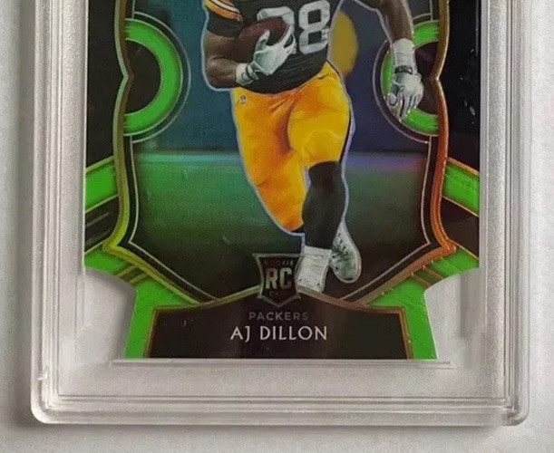 2020 Panini Prizm Concourse Neon Green Die Cut #65 AJ Dillon BMG Grade 10 Gem Mint Rare Prizm card. Shipped in a bubble mailer Actual photos of card that you will receive Additional photos available upon request