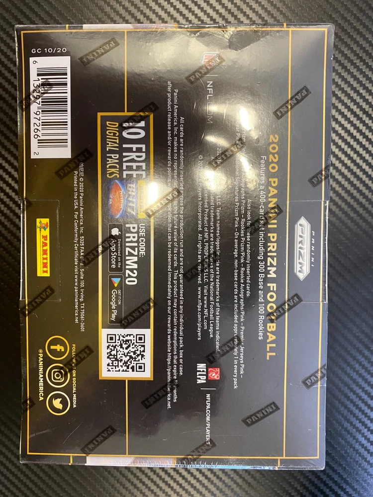 2020 Panini Prizm Football Mega Box 1 Auto Per Box Factory Sealed- Ship Today 4 Cards Per Pack 5 Packs per Box Each Box contains One Autograph garneted Prizm returns for the highly anticipated 2020 NFL season! Collect the colorful content that collectors around the world have come to know and love! We Ship The Day you Pay!!