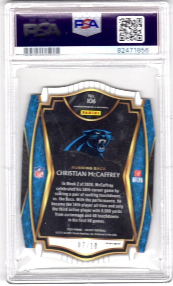 2020 Panini Select Christian McCaffrey Die Cut Gold Prizm/10 #106 PSA Gem Mt 10 Check the scan/s. Please ask any questions at 24 hours before close of auction. C heck my store as well as my other quality auctions and listings for rookies, autographs, vintage, etc. Got a favorite player, team, or college? Search our inventory and save! If you make multiple purchases at the same time any additional cards will be shipped free with the first purchase for the highest shipping price charged with domestic shipping. The item is sent well protected in a bubble envelope with the USPS Ground Advantage which includes tracking. Any item that qualifies for the Authenticity Guarantee program is not available for local pickup or combined shipping. Please wait to be invoiced with multiple purchases. W e use the Ebay International Shipping program for foreign purchases through Ebay. Once any auction is complete foreign purchasers will be invoiced directly by The Ebay system for all applicable charges. Cards usually ship within 24 hours of payment.