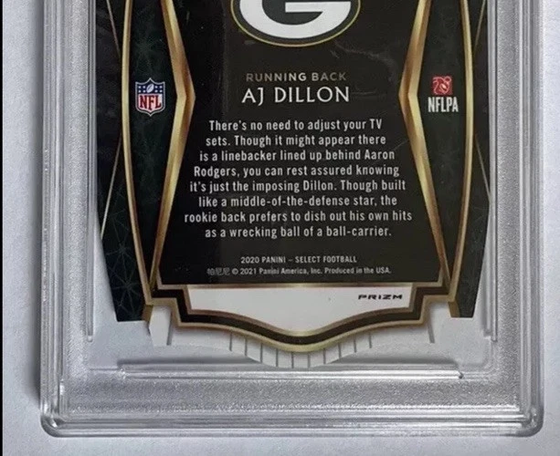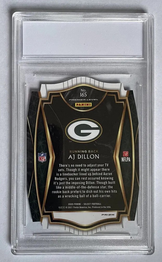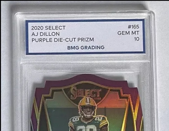 2020 Panini Select Purple Die Cut Prizm Rookie Card #165 AJ Dillon Green Bay Packers BMG Grade 10 Gem MT. Shipped in a bubble mailer Actual photos of card that you will receive Additional photos available upon request