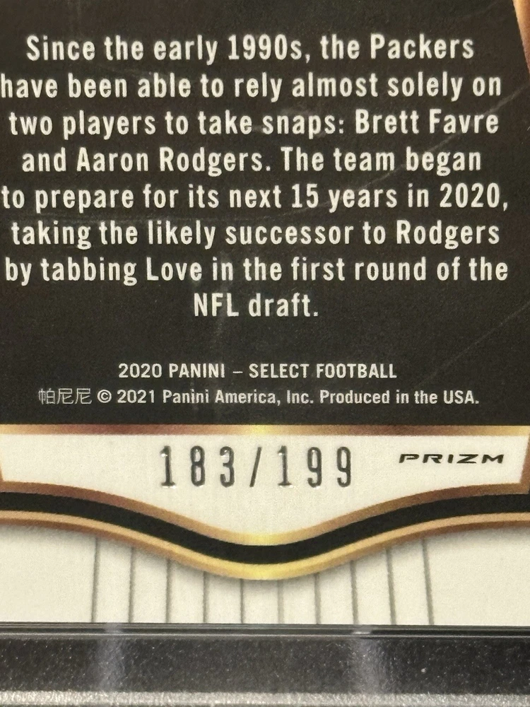 Home2020 Select Jordan Love Premier Level Tri-Color Prism /199 #147 rookie card