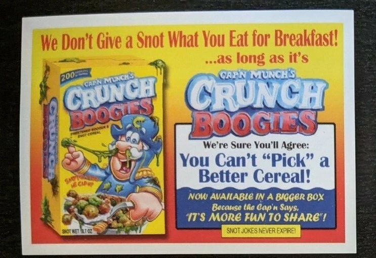 Age Level:13+Genre:AnimationYear Manufactured:2020Manufacturer:ToppsType:Non-Sport Trading CardGraded:NoCountry/Region of Manufacture:United StatesSet:Series 2Features:StickerFranchise:Wacky Packages