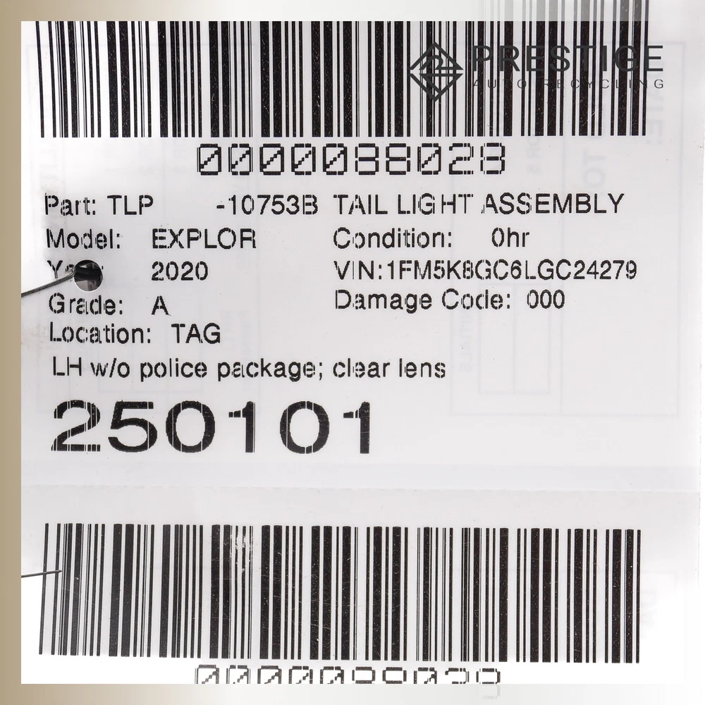 Prestige Auto Parts - Product Page Local pick-up available at 3400 Sunrise Blvd, Rancho Cordova, CA 95742 2020-2024 FORD EXPLORER Tail Light Tail Lamp Outer Left LB5Z-13405-F Not sure if the part fits? Send us your VIN, and we'll verify compatibility for you! Item Condition The item is in good condition, fully operational, and demonstrates normal signs of use. Please note that, as a used part, it may show light scuffs, scratches, or other minor imperfections, as shown in the photos provided. WHEN YOU BUY FROM US YOU AGREE TO OUR TERMS AND CONDITIONS: It is the buyer's responsibility to carefully inspect all of the photos for details and/or request more photos if necessary, what you see in photos is exactly what you will receive. Before purchase, the buyer MUST verify that the item will fit their vehicle. PLEASE NOTE: Make sure to verify fitment independently with your local dealer, information in the “compatibility” section is generated by eBay Motors, not from us. IF YOU HAVE ANY QUESTIONS, CONTACT US VIA EBAY MESSAGING BEFORE PURCHASING. Payment We accept PayPal, VISA, MasterCard, Discover, and American Express. Sales tax collected by eBay where applicable. For local orders, pay on pickup available. Shipping Most items ship within 24 hours of payment; items paid for on the weekend or holidays ship on the following business day. We ship by FedEx, UPS, USPS, and regional freight/LTL carriers, whichever option is most affordable and/or faster. Shipping prices for ground apply only to the continental United States. Anywhere else is considered international shipping and will have an international shipping rate. Any international customs fees are the responsibility of the buyer. Any free shipping we offer is for the continental United States only. If you are from Hawaii, Alaska, or a Territory of the United States, please request a shipping total before bidding and we will do our best to keep the cost low. For orders placed outside of the United States, we ship ONLY through the eBay Global Shipping Program. If you are outside of the US, use the eBay international shipping tool above to receive a price for shipping costs. Local pickup and delivery options also available, please contact us for arrangements. PLEASE NOTE: Oversized items like engines, transmissions, bumpers, doors, hoods, trunk lids, fenders and other similar items will be shipped via Freight Shipping and MUST be shipped to a business address with a dock or forklift access; otherwise, liftgate and/or residential delivery fees may apply. YOU MUST CONTACT US FIRST FOR A QUOTE BEFORE PURCHASING SAID ITEMS. Warranty and Returns All returns must be made within 30 days of item being received by the customer only if the item is non-functional or if it differs substantially from the description. Buyer is fully responsible for shipping cost of the return. We are not liable to pay for any labor fees associated with the installation or removal of any parts sold by us. All electronics are tested before removed from vehicle. IF NOT FUNCTIONAL, WE WILL NOT SELL. If the item is defected we will state accordingly and is sold for parts only. If you have any questions about the part you’re bidding on, PLEASE ASK QUESTIONS PRIOR TO BIDDING. 90 DAY WARRANTIES are available. Contact Us If you have questions about any part, please contact us BEFORE purchasing via eBay messaging. HOW DID WE DO? We are a small, family owned business dependent on our valuable customers. Once you have received your item in satisfactory condition, would you be so kind as to leave us feedback? If there is a concern that would cause you to want to leave negative feedback, please contact us first and we will do our best to resolve the issue. Thank you and God bless! © 2025 Prestige Auto Recycling. All rights reserved.