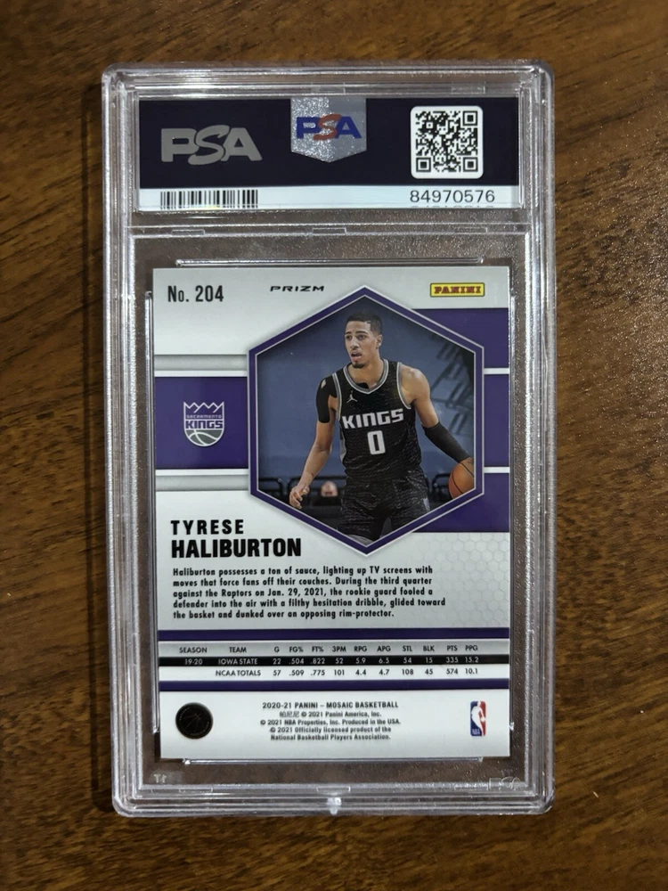 ✨2020-21 Panini Mosaic TYRESE HALIBURTON Rookie Reactive Orange #204 PSA 10 Gem