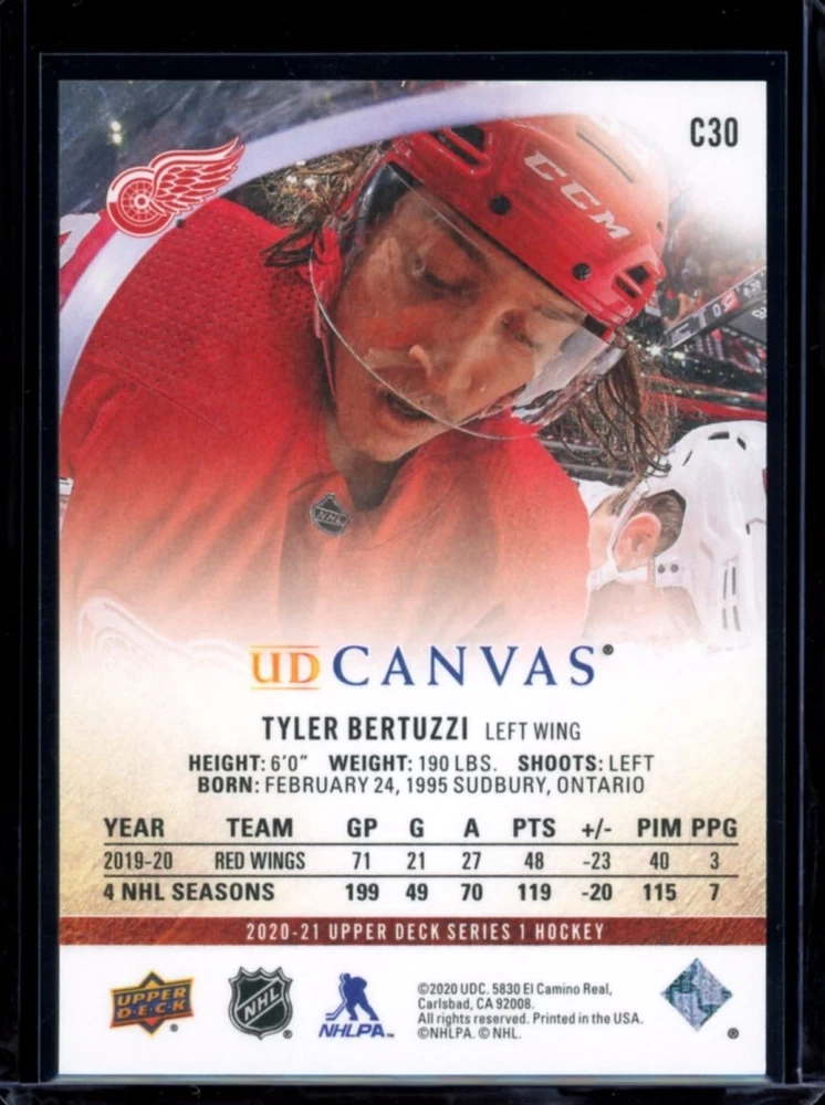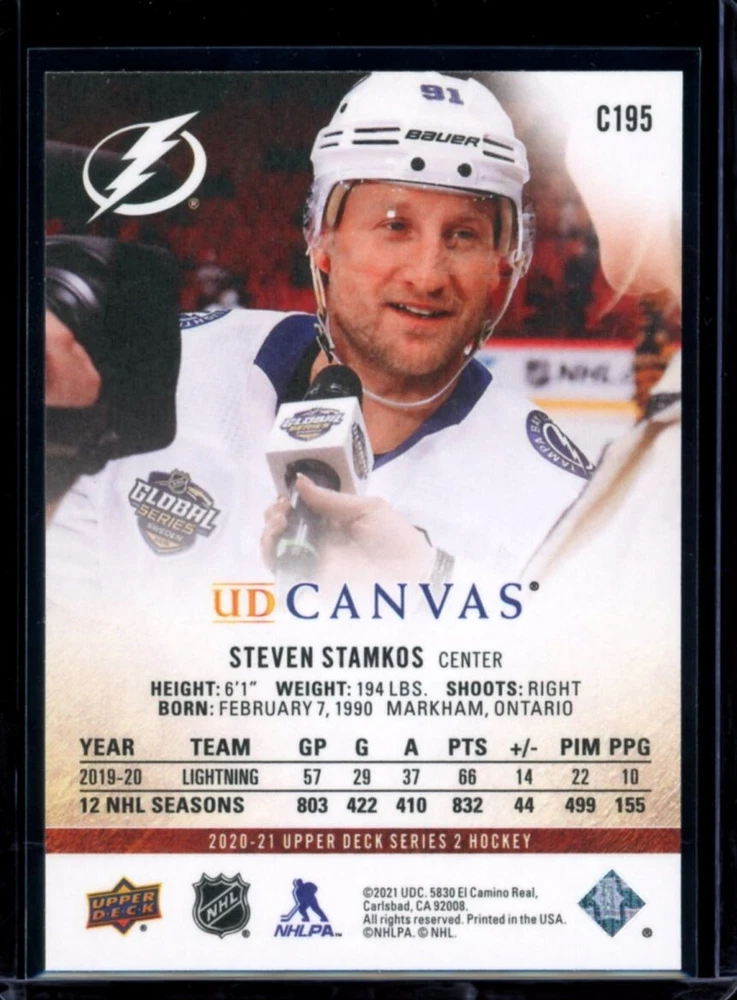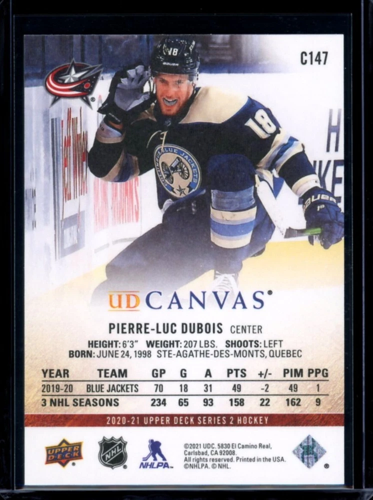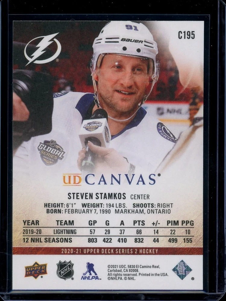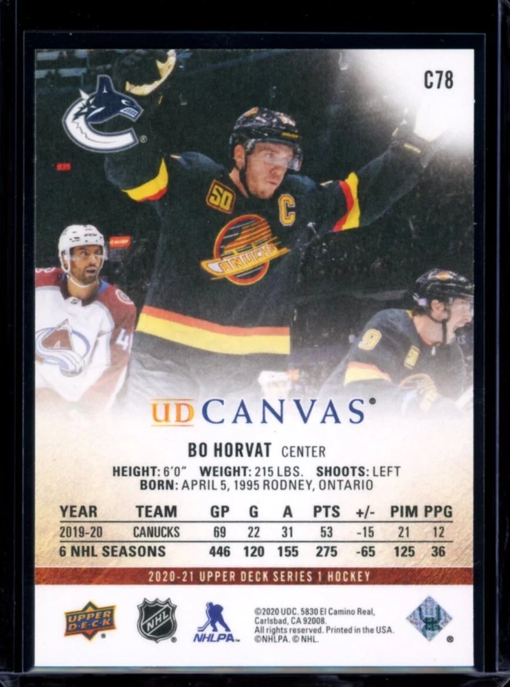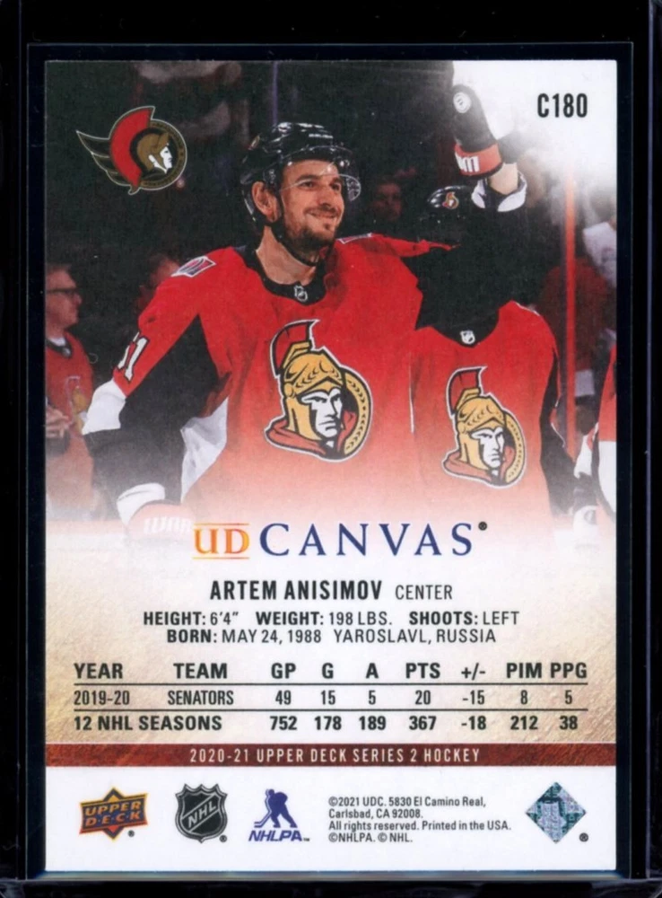 2020-21 Upper Deck Canvas You Will Receive The Card Pictured - We Do NOT Use Stock Images!! See High Resolution Scan To Determine If Condition Is Acceptable. We Will Disclose Any Major Condition Issues That Cannot Be Seen In The Scan, In The Description. Ca r d Shipped In Sleeve, Top Loader And Team Bag. Packed In Paper And Shipped In A Plain White Envelope . 99 Cent Letter Mail Across Canada For The First Card 25 Cents For Each Additional Card $1.99 To The USA $1.00 For Each Additional Card USA Orders Over $80 FREE!! Tracked Shipping Canadian Orders Over $50 FREE!! Tracked Shipping