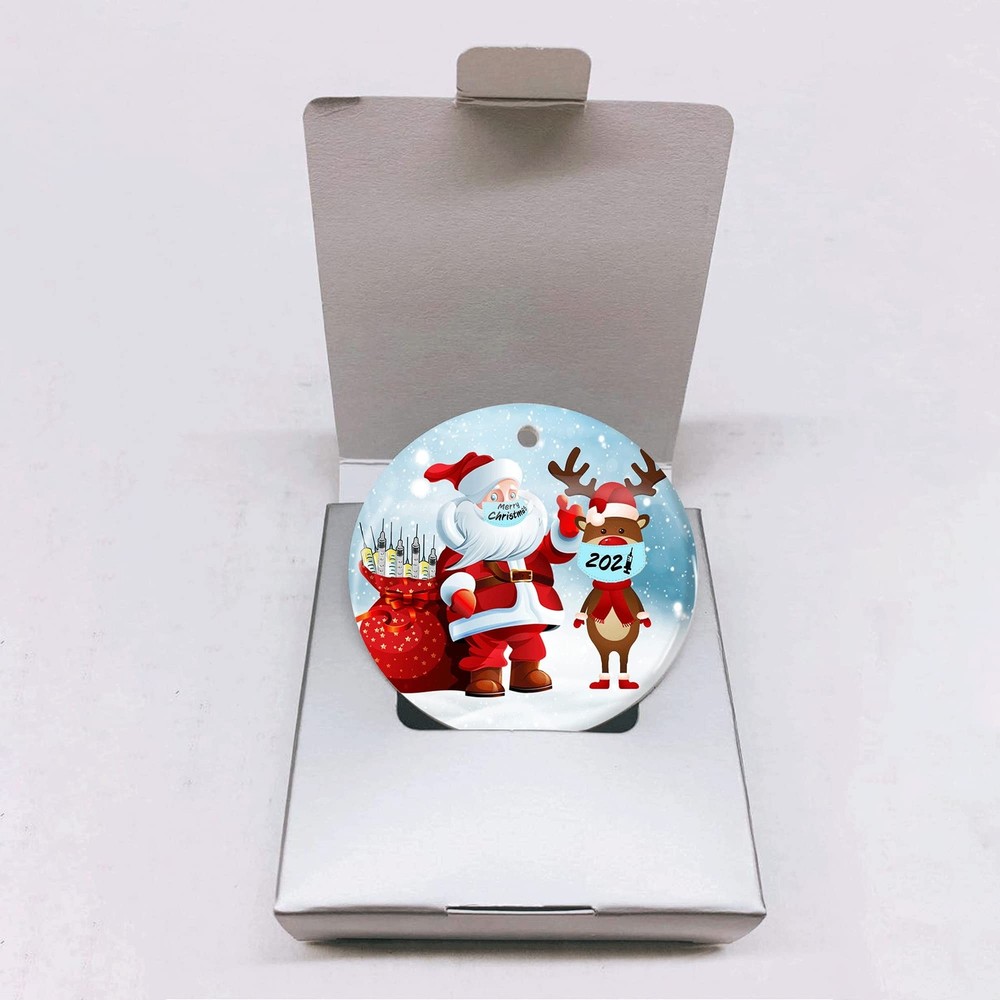 2021 Christmas Ornament Vaccinated Santa Claus and Reindeer Pandemic Decor Ornament Decoration Tree Hanging Ornament Souvenir Gift for Home Indoor Outdoor Decor Product Details Package Dimensions: 5.71 x 4.65 x 1.5 inches Item Weight: 1.8 ounces Manufacturer: Gearment Date First Available: August 24, 2021 Merry Christmas 2021! Quantity: 1, each ornament comes with a beautiful gold string for hanging and a box. High quality ceramics and inks are used to give the best product. Both sides of the ornament are printed with sublimation heat processes to ensure a permanent image. You can hang this ornament on your Christmas Tree as well as use it like a magnet and put it on your fridge, or on the wall. 2021 will definitely be a year to remember! This unique ornament is a perfect memorable gift for your family and friends on Christmas! Hanging this unique ornament on your Christmas tree or sending to families and friends as a holiday gift, it will be a perfect way to create lasting, loving memories. Design your own set of Christmas decorations to make your tree hip, traditional, or funky to suit your unique style. A set of Christmas ornaments can be the perfect heirloom to use year after year, generation after generation. These ceramic ornaments attach securely to the tree to ensure that they’re cat- and child-proof.
