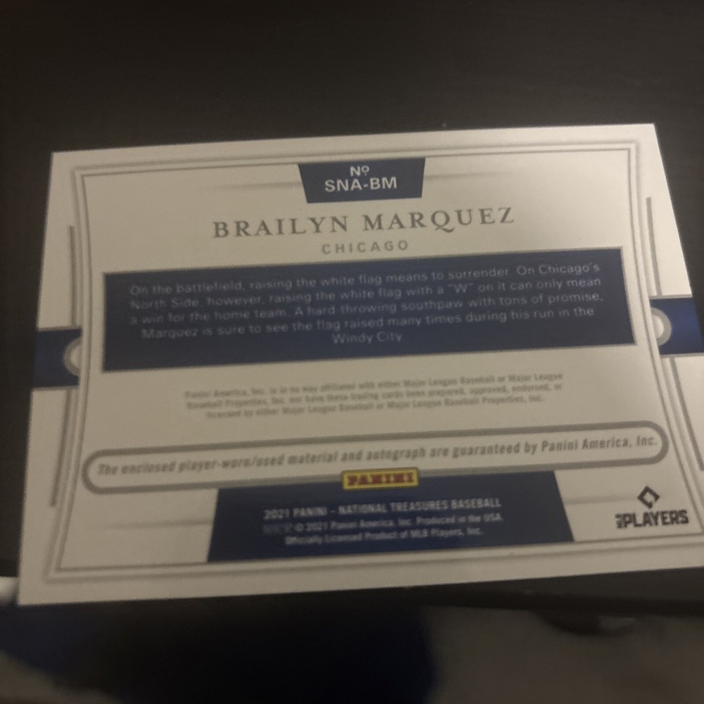 Type:Sports Trading CardSet:2021 National TreasuresLanguage:EnglishPlayer/Athlete:Brailyn MarquezFeatures:Parallel/Variety, Rookie, Serial Numbered, AutoSport:BaseballTeam:Chicago CubsVintage:NoCustom Bundle:NoManufacturer:PaniniSeason:2021Country/Region of Manufacture:United StatesLeague:Major League (MLB)Autographed:YesOriginal/Licensed Reprint:OriginalYear Manufactured:2021Parallel/Variety:Signatures