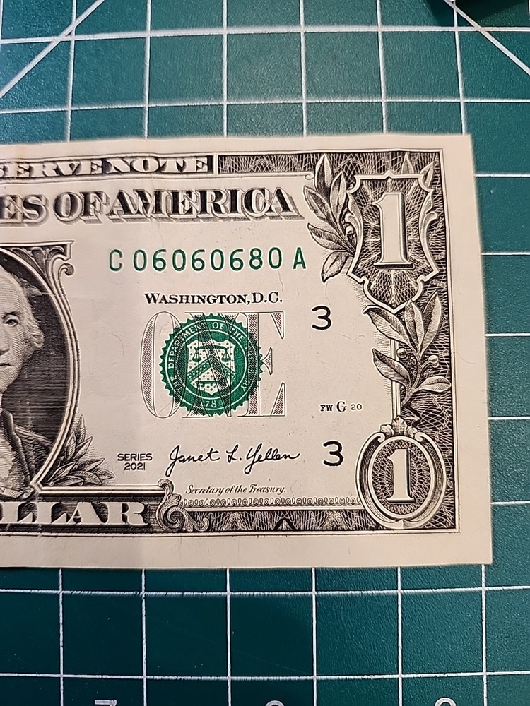 The 2021 Note - Trinary C06060680 is a circulated $1 banknote from the United States. This Federal Reserve Note features a unique design and has not been graded or certified. It is a valuable addition to any collection of US paper money, representing a piece of currency history from the current year. I offer fast shipping with postal proof packaging. I do combine shipping on orders. Thank you for looking.