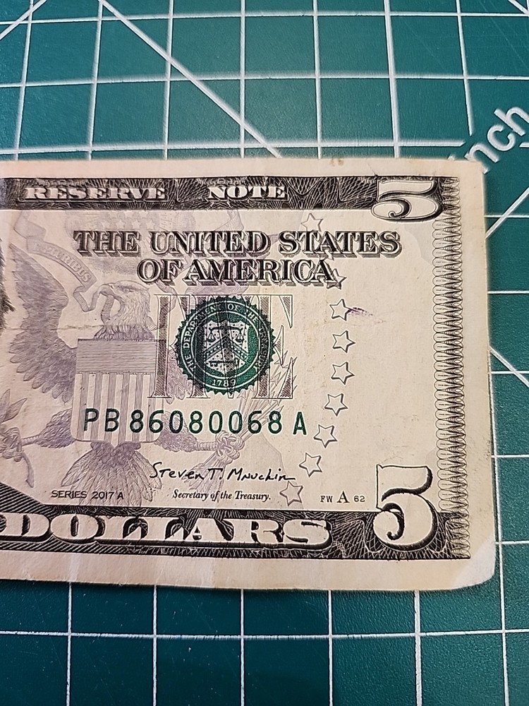 The 2021 Note - Trinary PB86080068 is a circulated $5 banknote from the United States. This Federal Reserve Note features a unique design and has not been graded or certified. It is a valuable addition to any collection of US paper money, representing a piece of currency history from the current year. I offer fast shipping with postal proof packaging. I do combine shipping on orders. Thank you for looking.